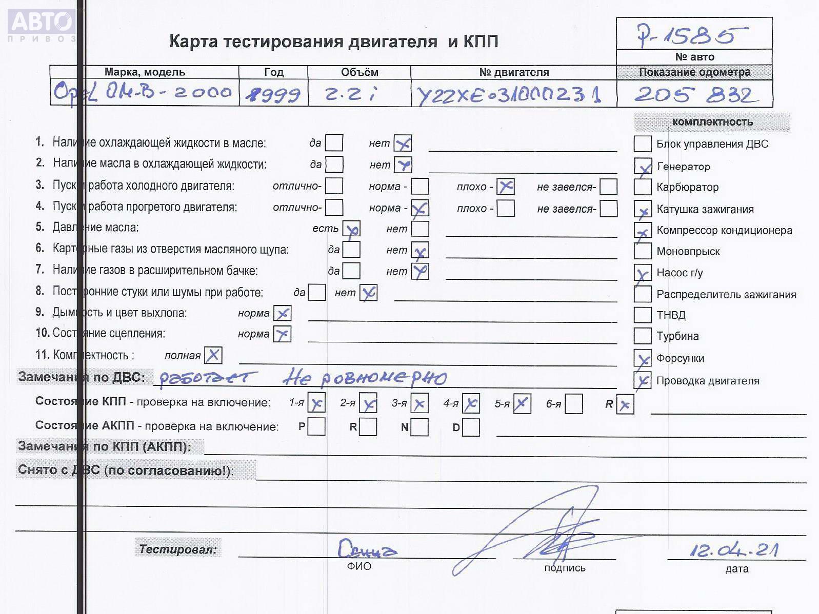 | Автомобиль / VIN: | P1585 W0L0VBF35Y1000185 |