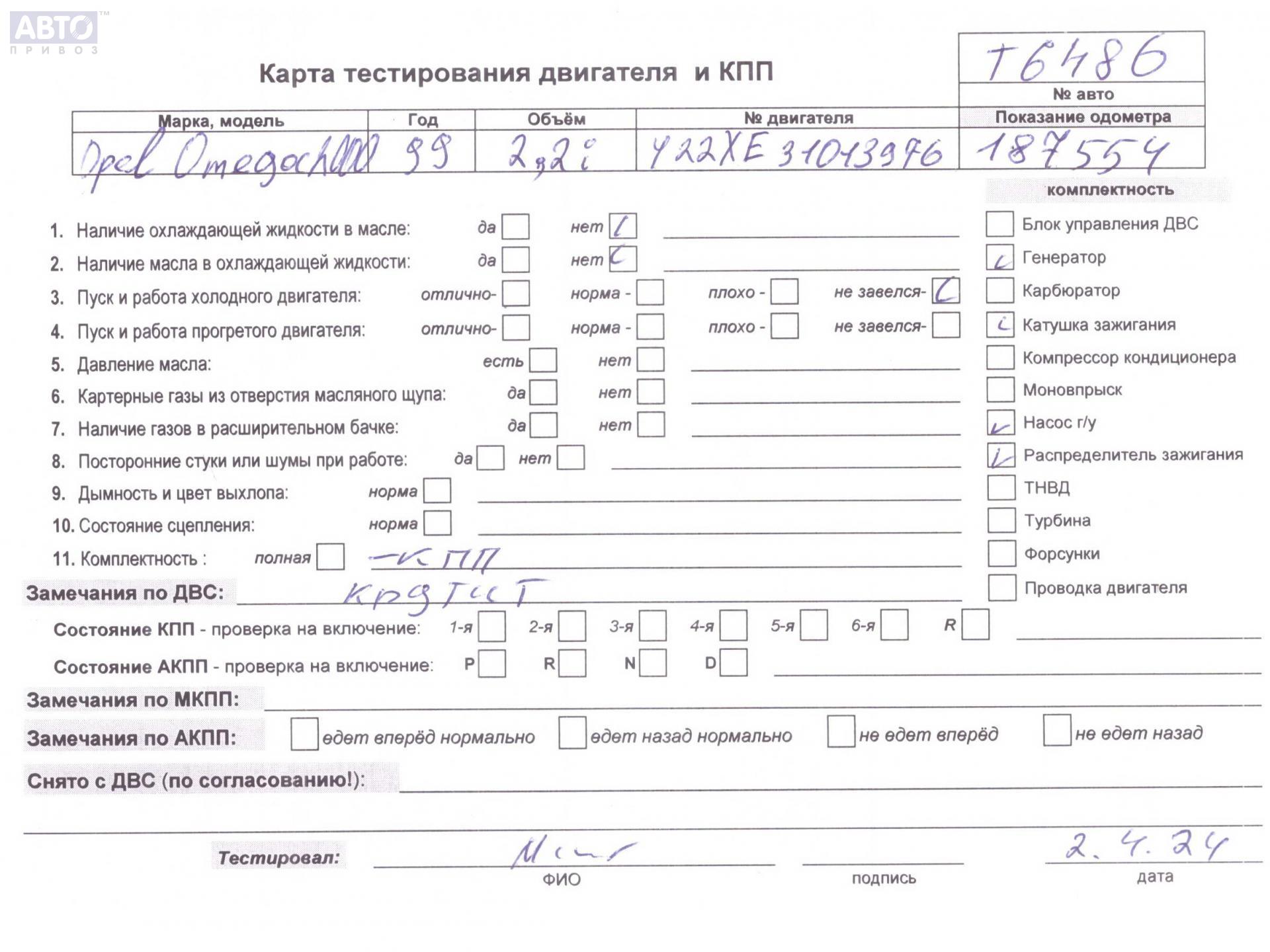 | Марка / Модель / Год: | Opel Omega B (1994-2003) 2000 |