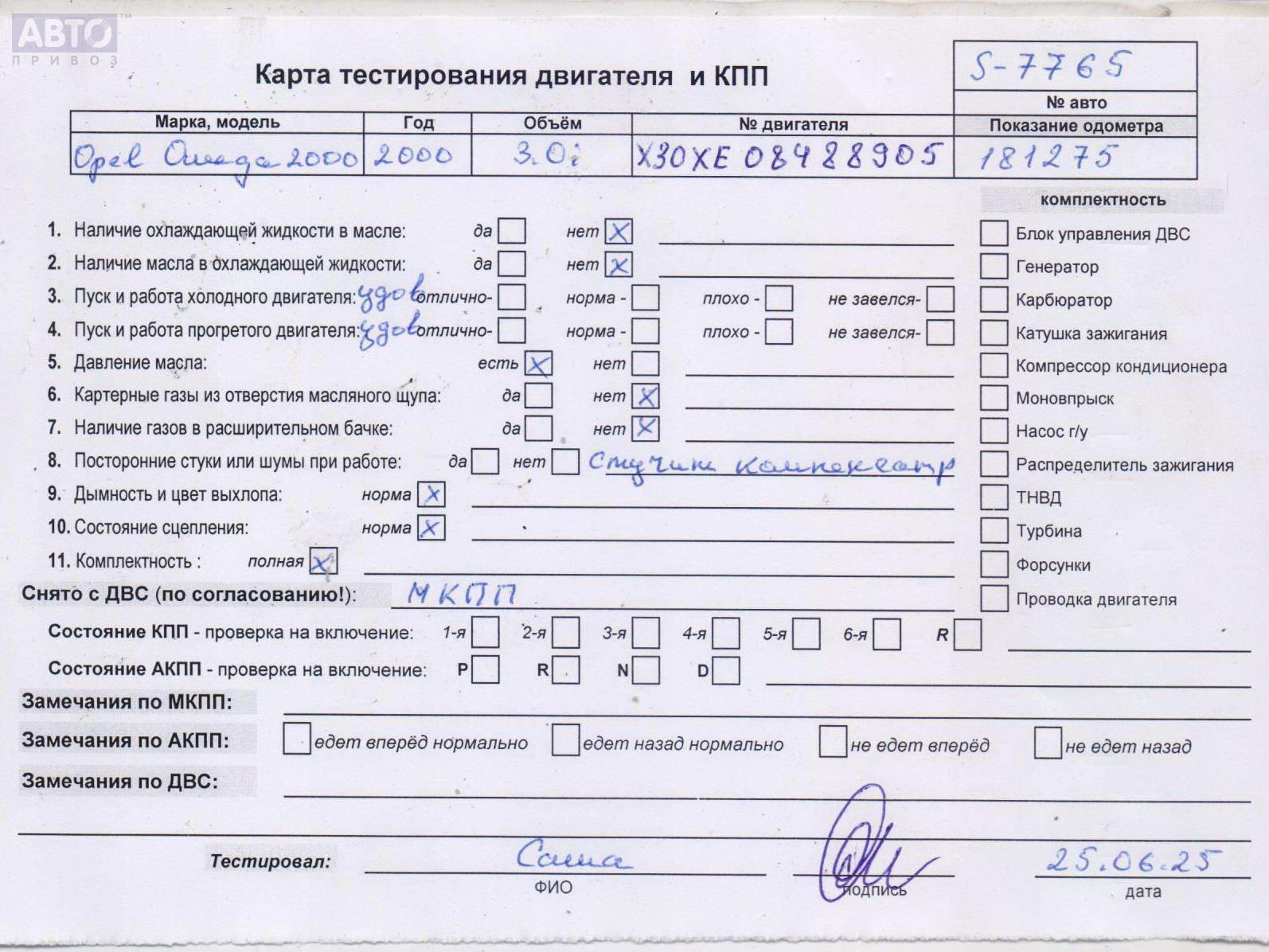 | Марка / Модель / Год: | Opel Omega B (1994-2003) 2000 |