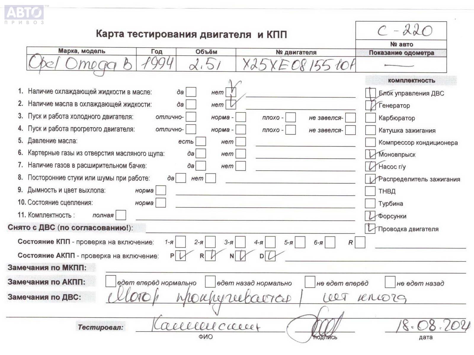 | Марка / Модель / Год: | Opel Omega B (1994-2003) 1996 |