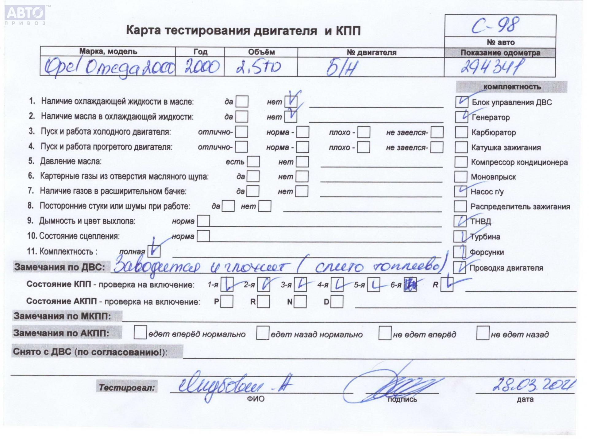 | Автомобиль / VIN: | C0098 W0L0VBP3531098512 |
