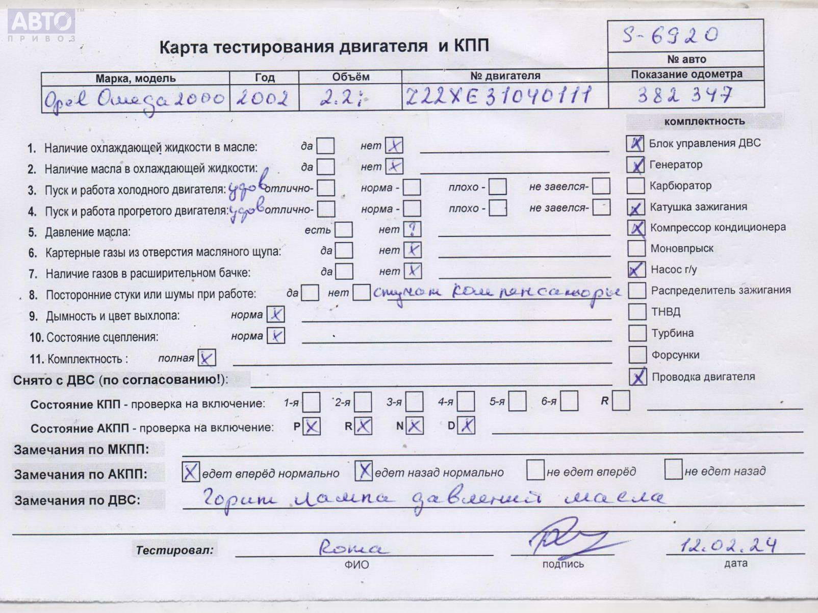 | Автомобиль / VIN: | S6920 W0L0VBF3521028077 |