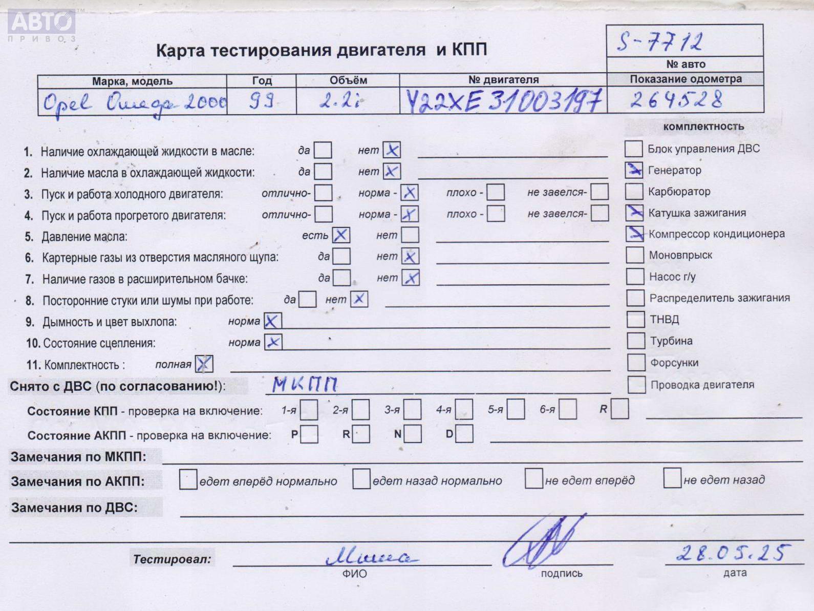 | Марка / Модель / Год: | Opel Omega B (1994-2003) 2000 |