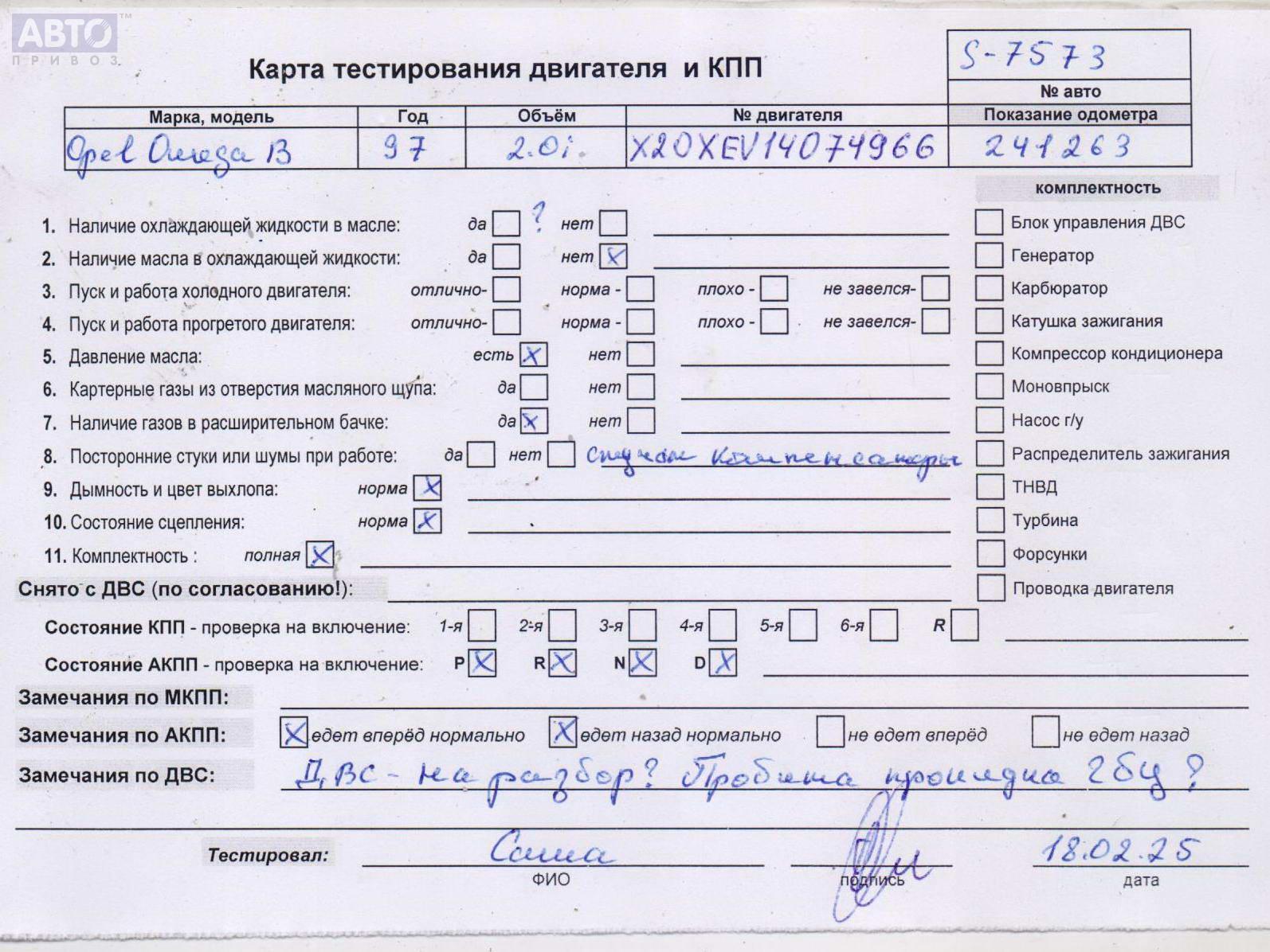 | Автомобиль / VIN: | S7573 W0L000021V1921080 |