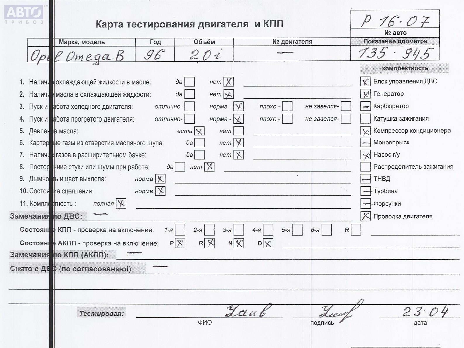 | Автомобиль / VIN: | P1607 W0L000026V1065767 |