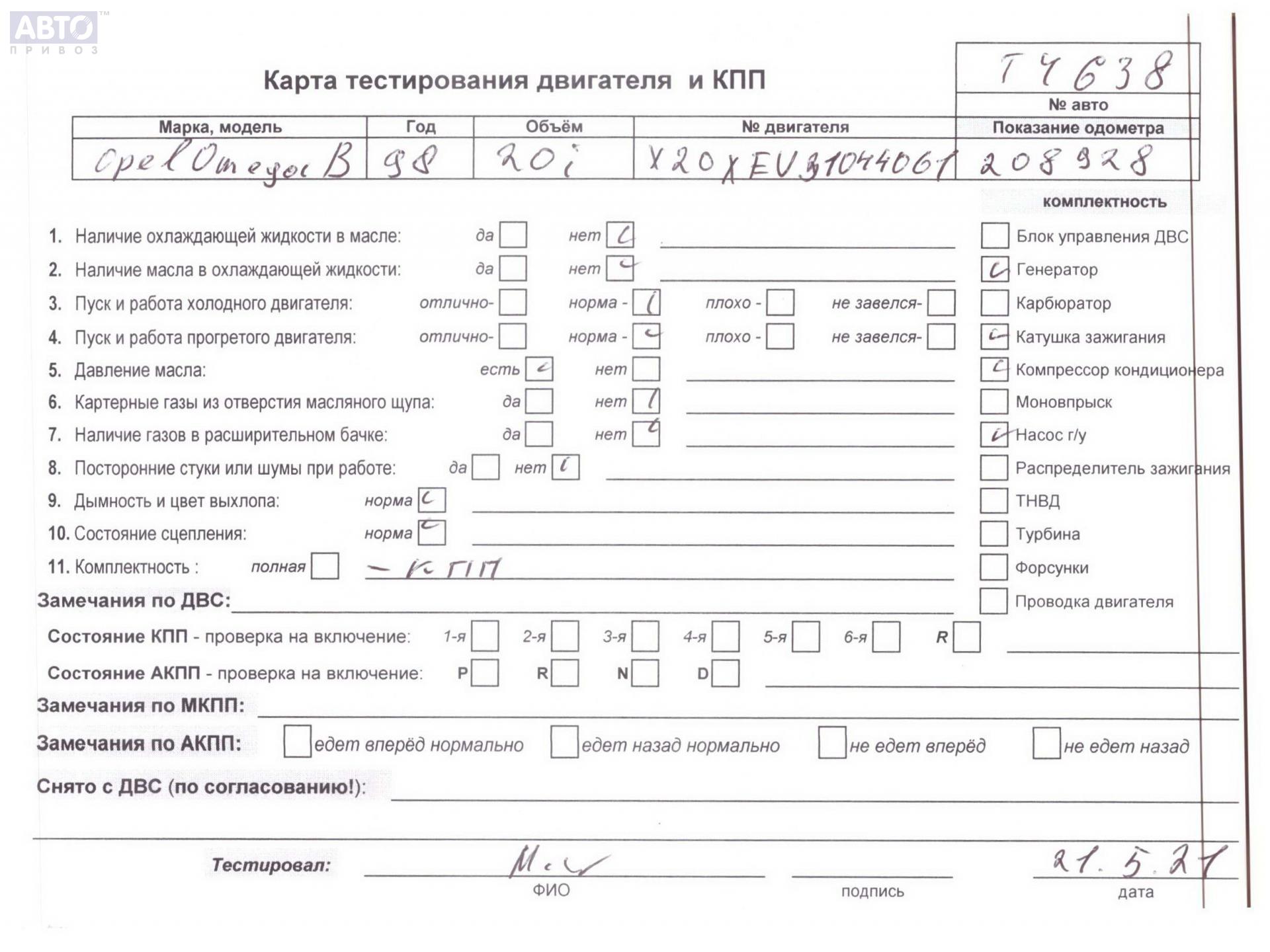 | Марка / Модель / Год: | Opel Omega B (1994-2003) 1998 |