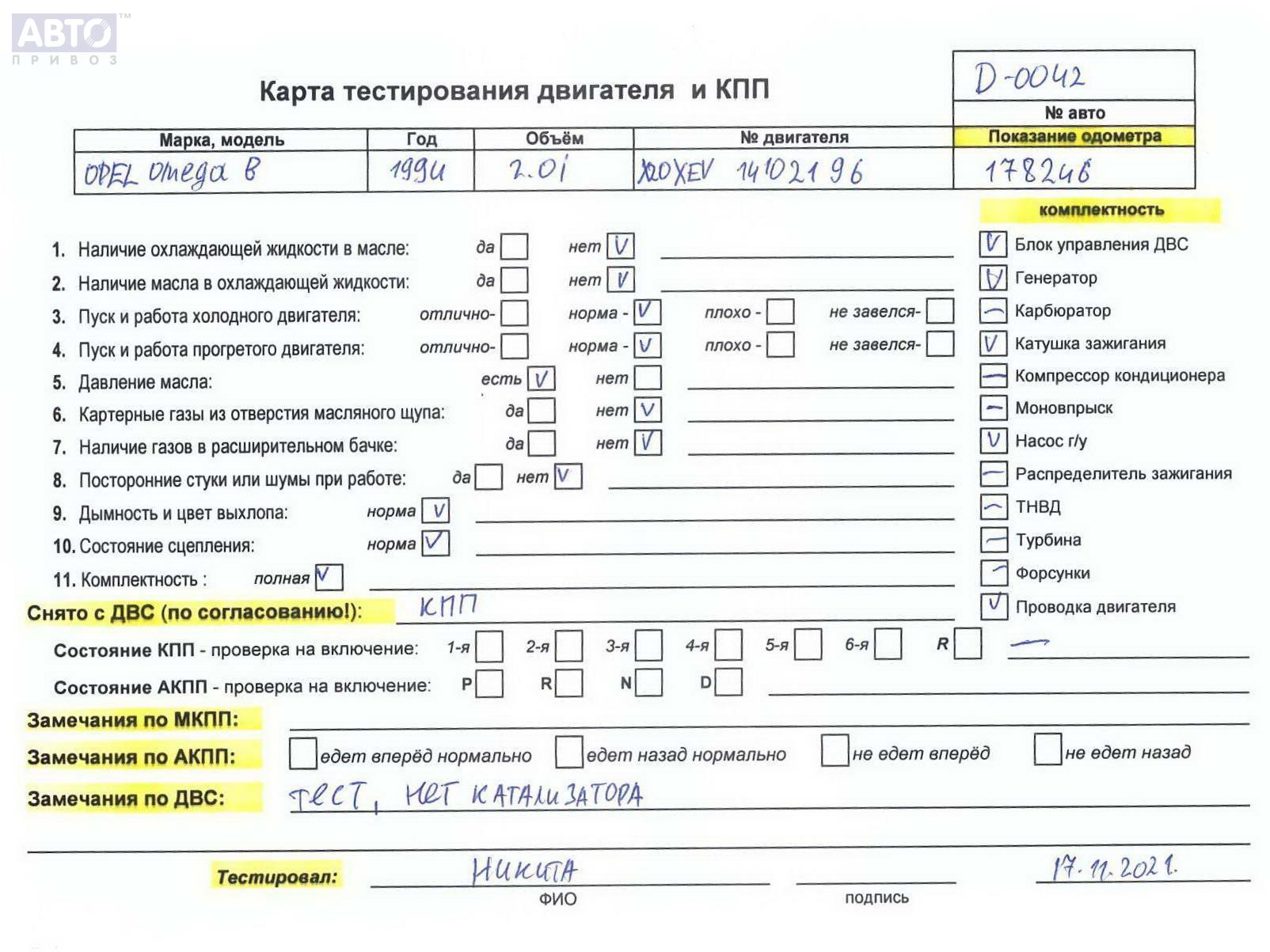 | Автомобиль / VIN: | D0042 W0L000026S1121100 |