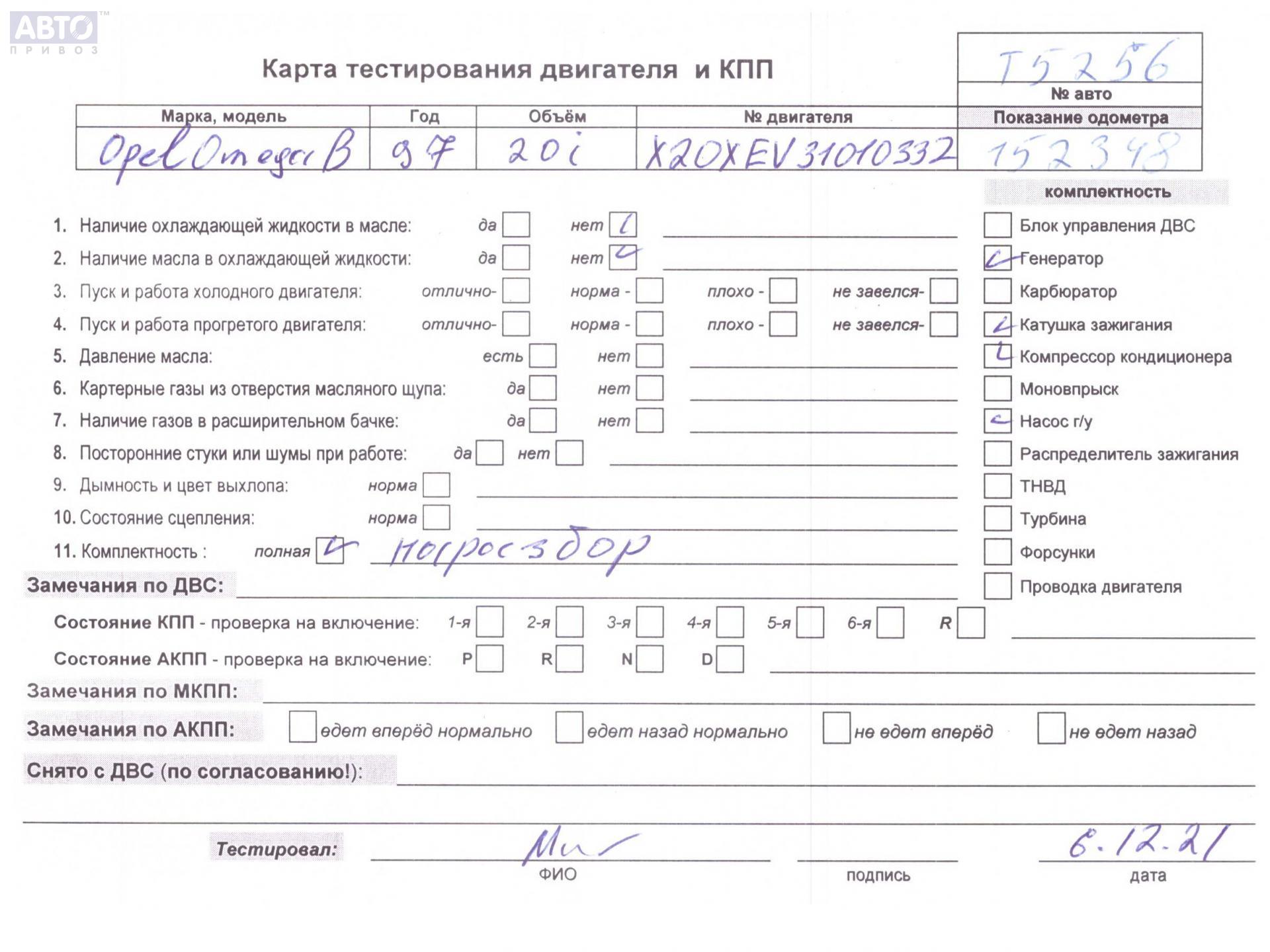 | Марка / Модель / Год: | Opel Omega B (1994-2003) 1997 |
