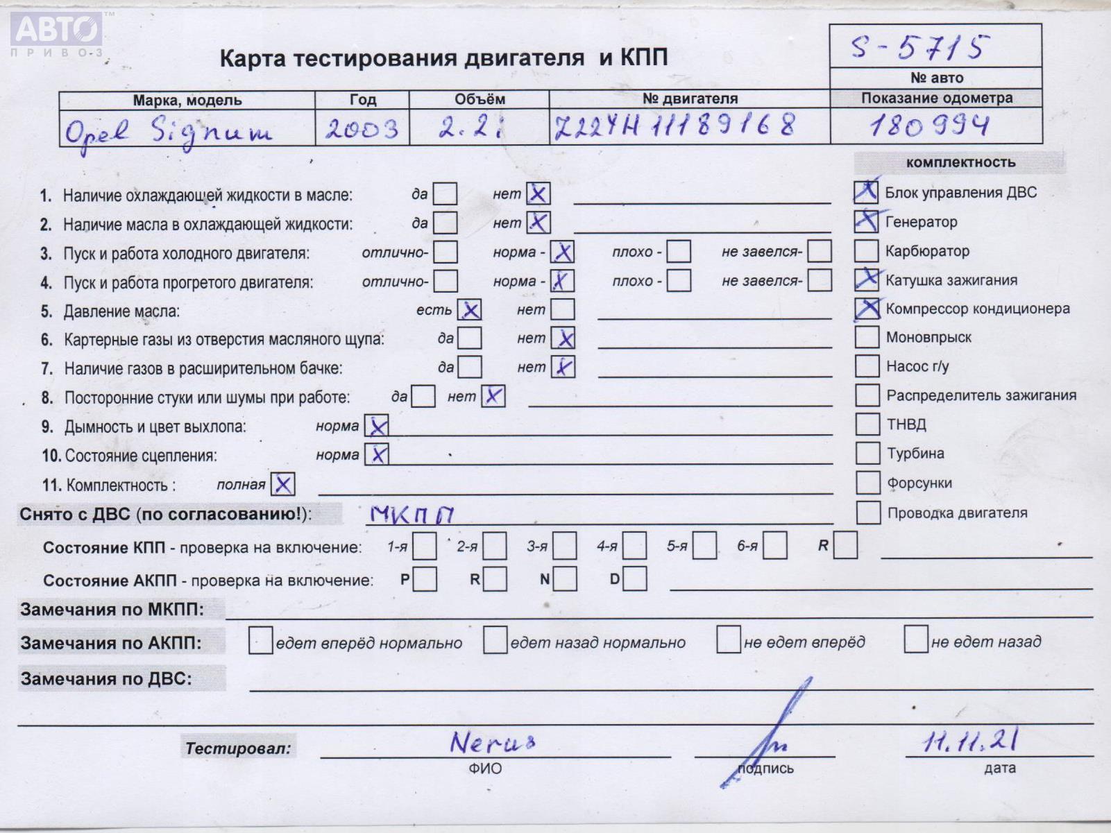 | Марка / Модель / Год: | Opel Signum (2003-2008) 2003 |