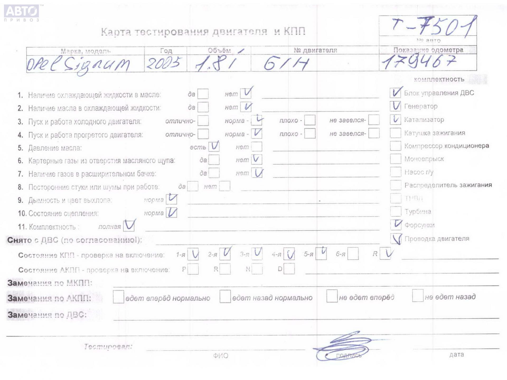 | Марка / Модель / Год: | Opel Signum (2003-2008) 2006 |