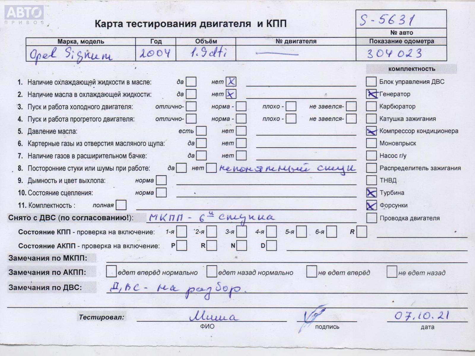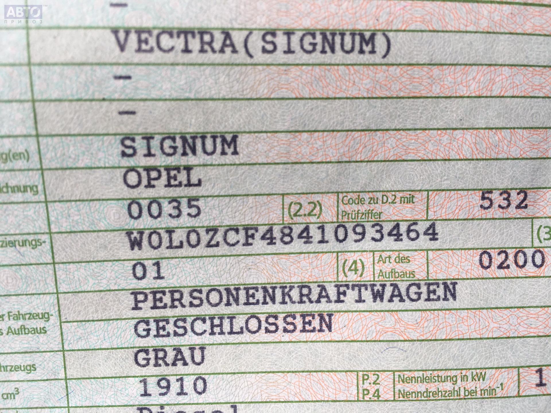 | Марка / Модель / Год: | Opel Signum (2003-2008) 2004 |