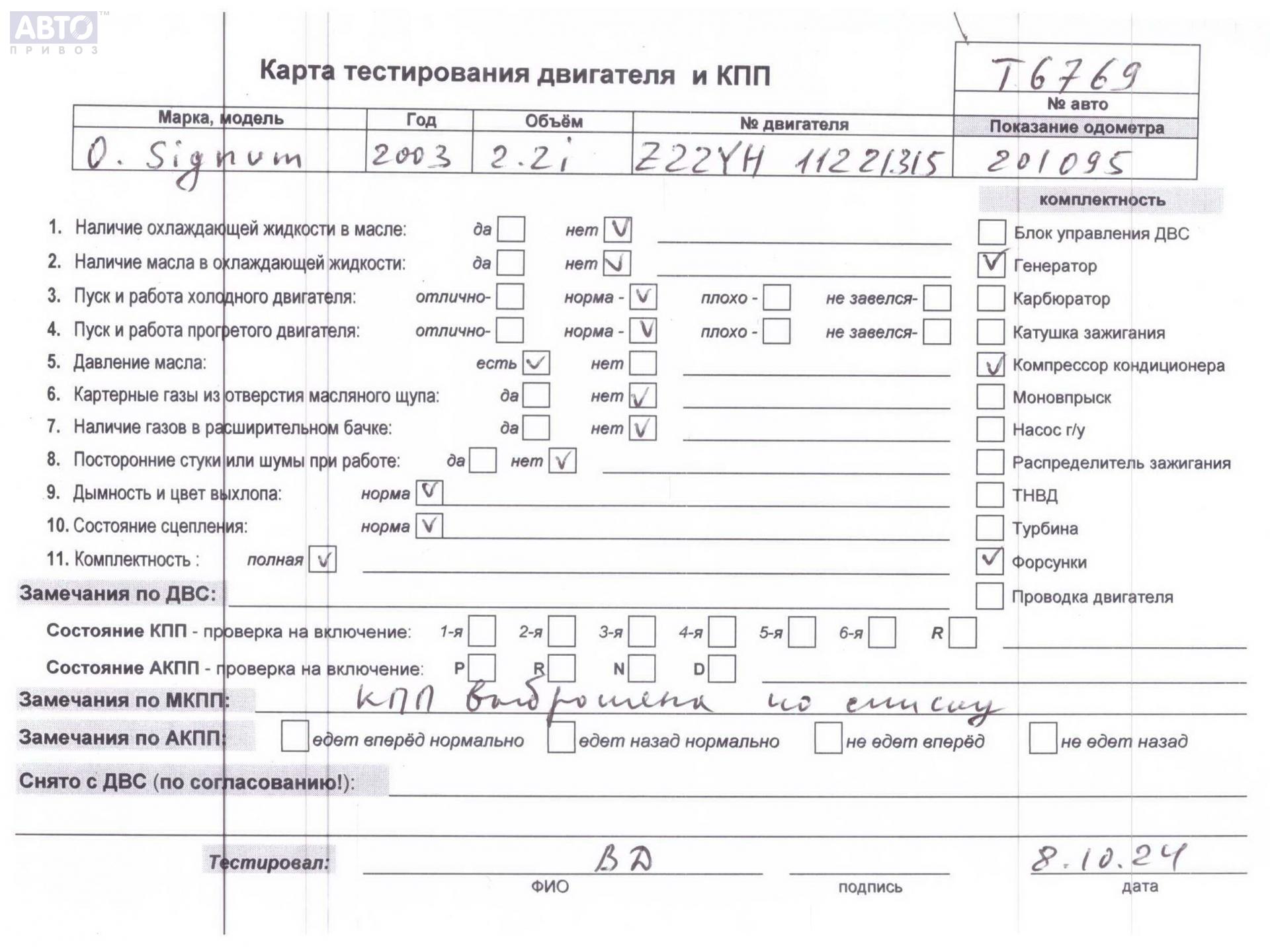 | Марка / Модель / Год: | Opel Signum (2003-2008) 2003 |