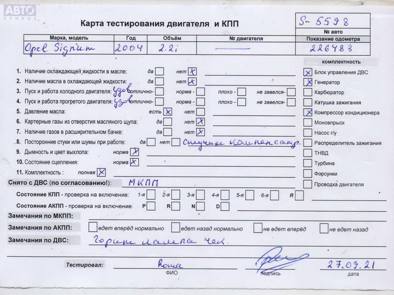 | Марка / Модель / Год: | Opel Signum (2003-2008) 2004 |