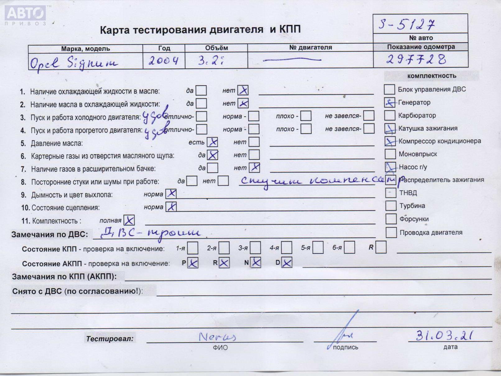 | Марка / Модель / Год: | Opel Signum (2003-2008) 2004 |