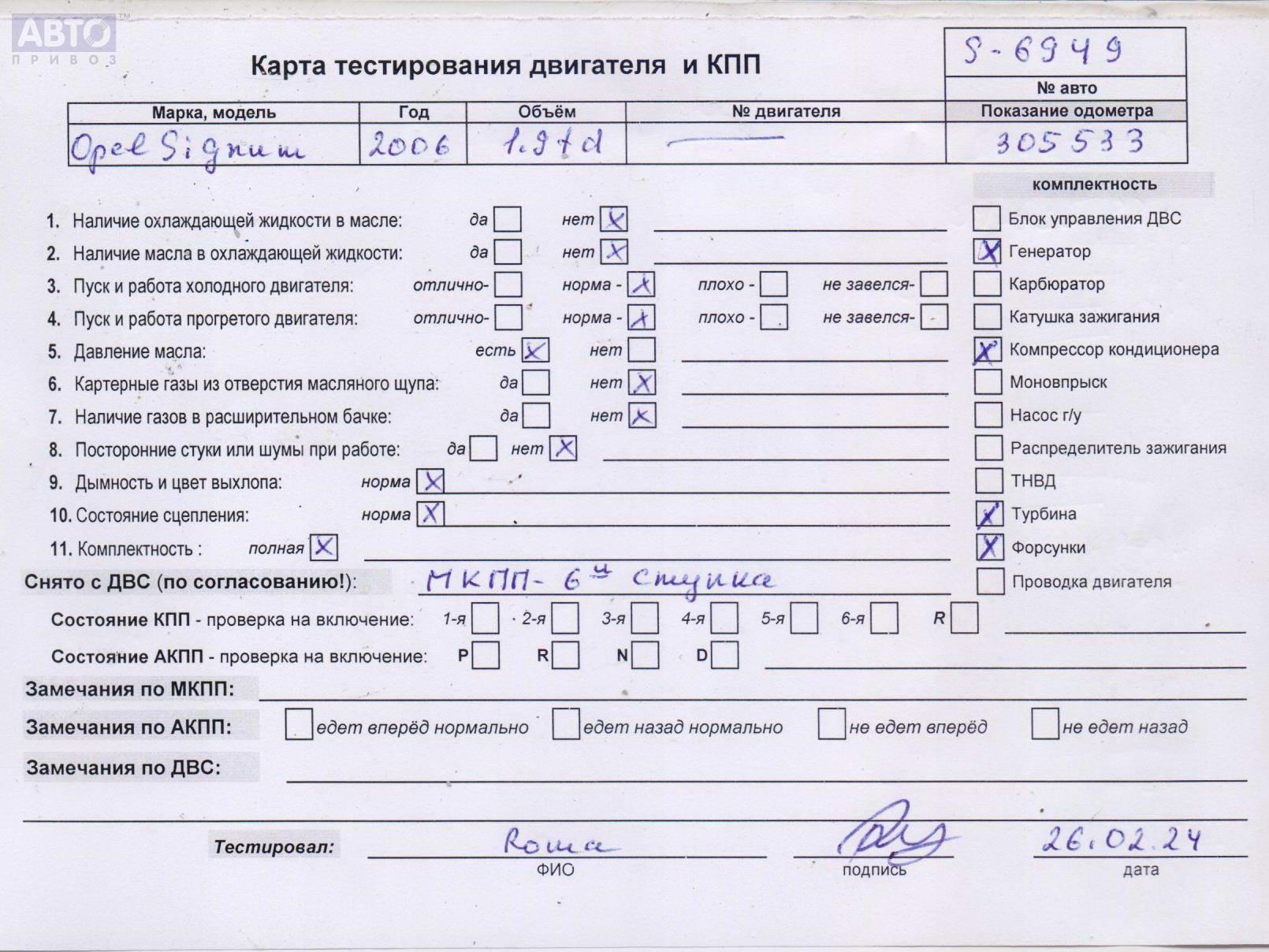 | Марка / Модель / Год: | Opel Signum (2003-2008) 2006 |