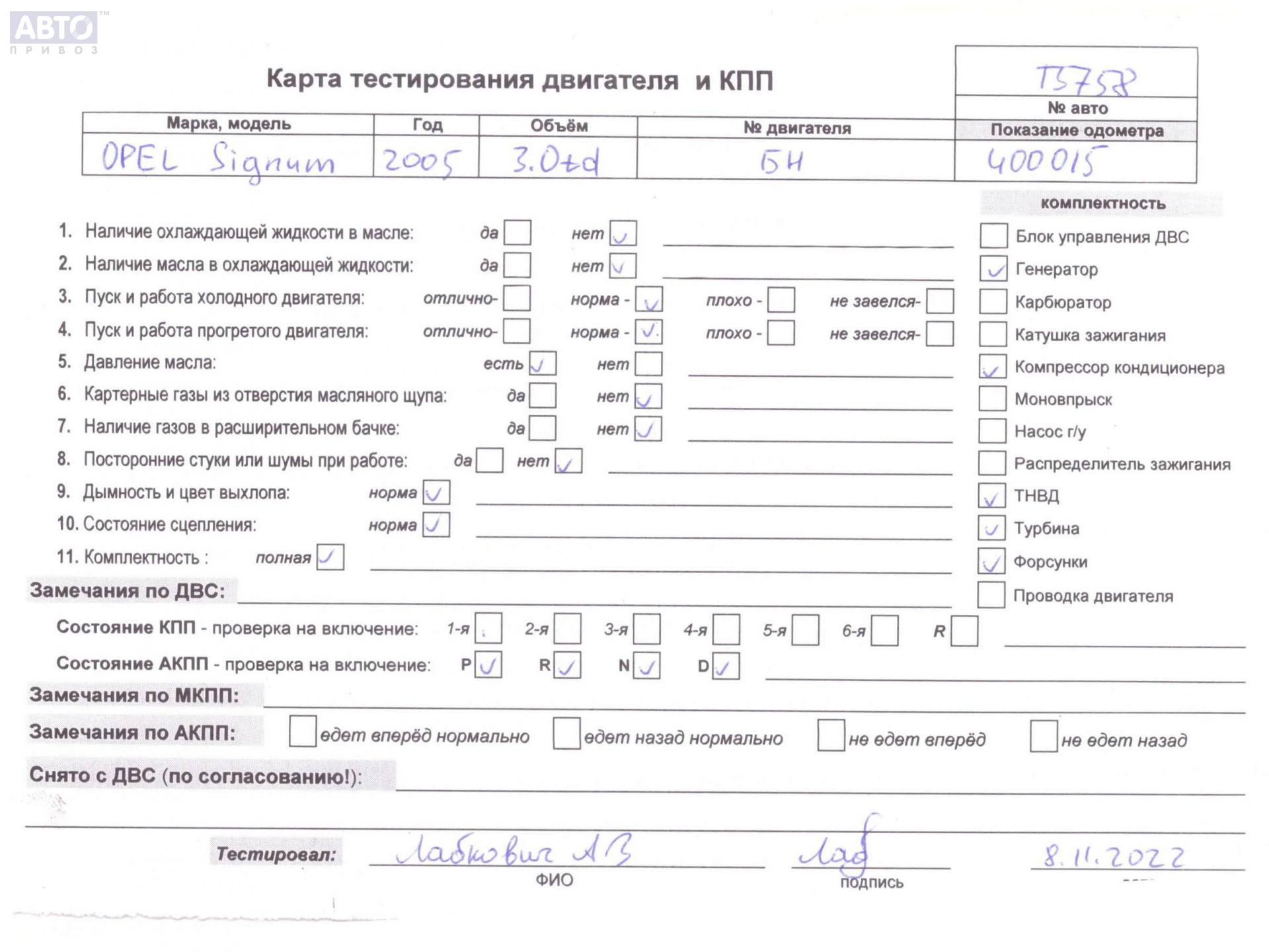 | Марка / Модель / Год: | Opel Signum (2003-2008) 2005 |