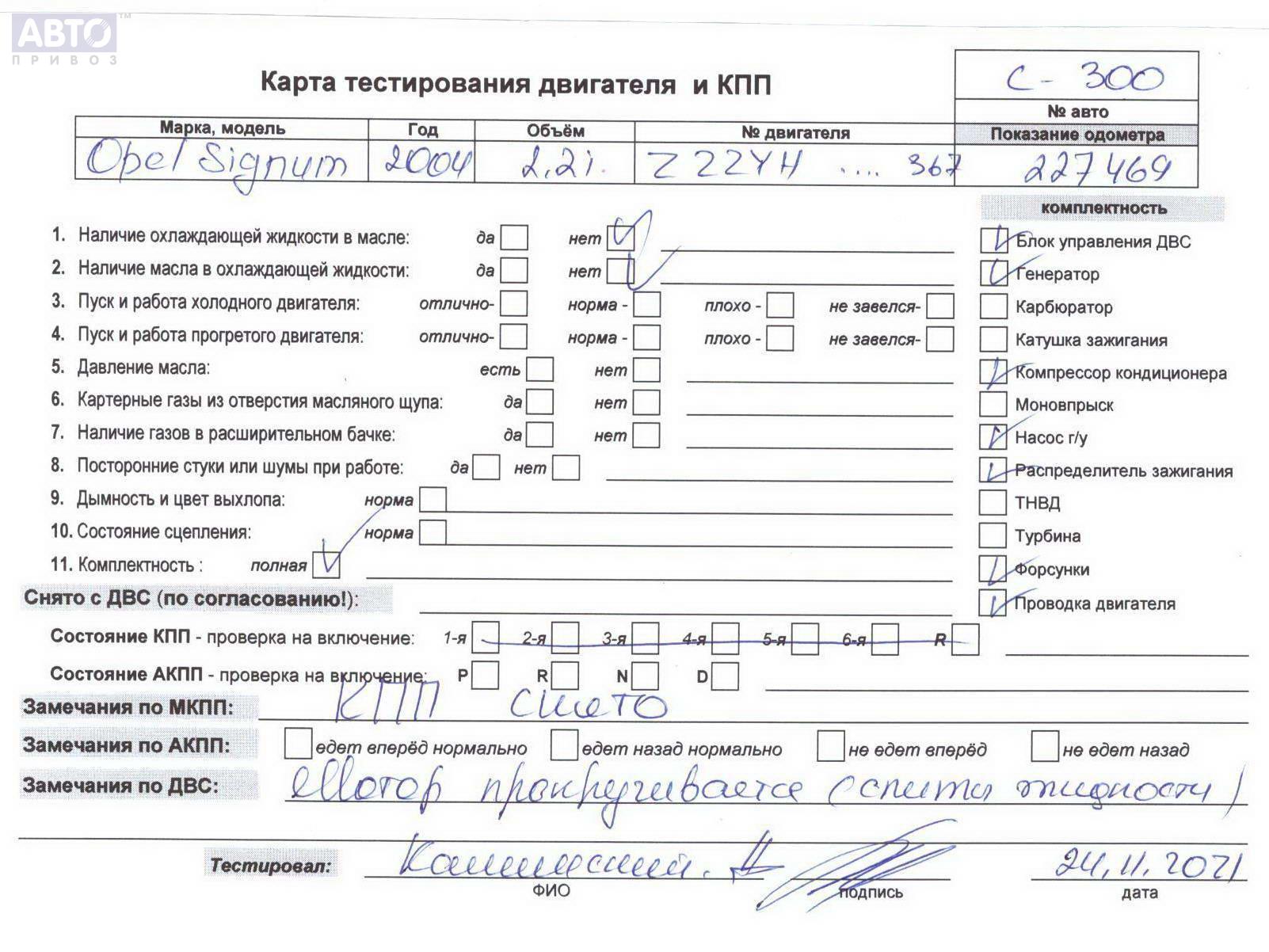 | Марка / Модель / Год: | Opel Signum (2003-2008) 2004 |