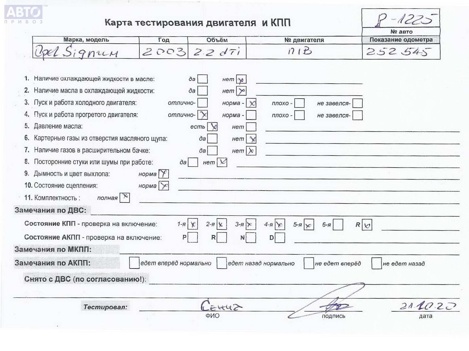 | Марка / Модель / Год: | Opel Signum (2003-2008) 2003 |