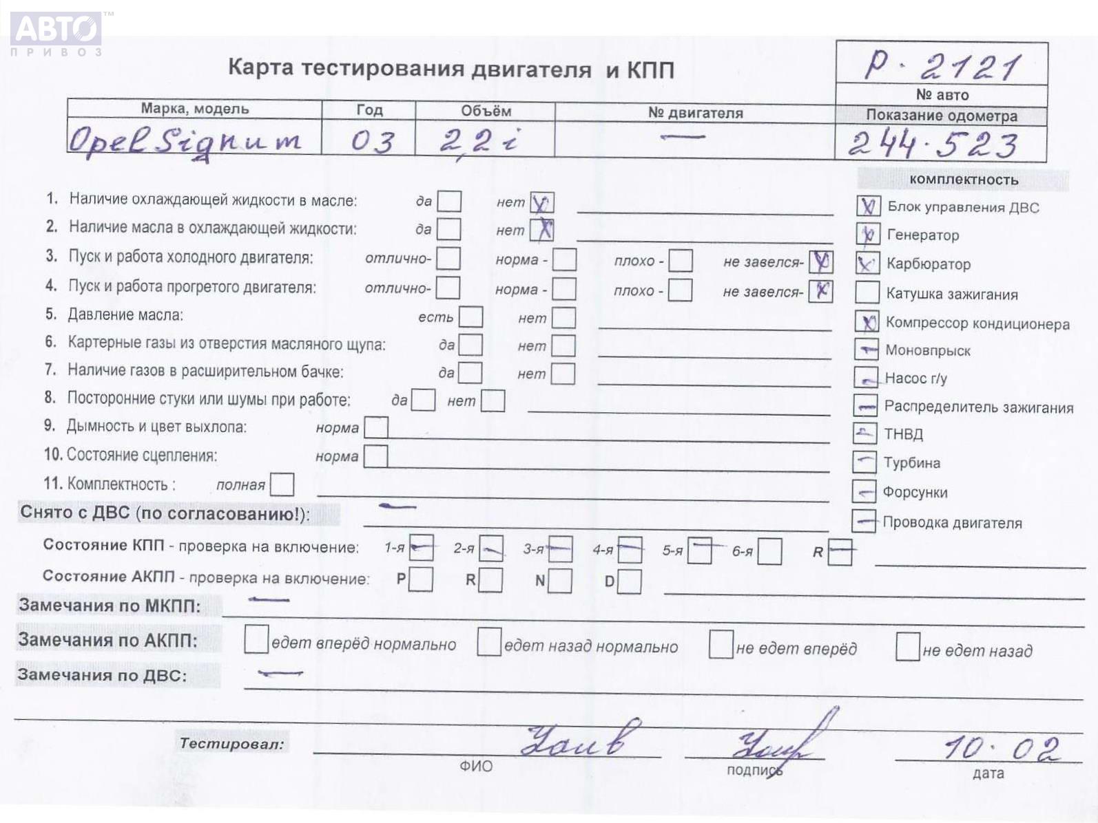 | Марка / Модель / Год: | Opel Signum (2003-2008) 2003 |