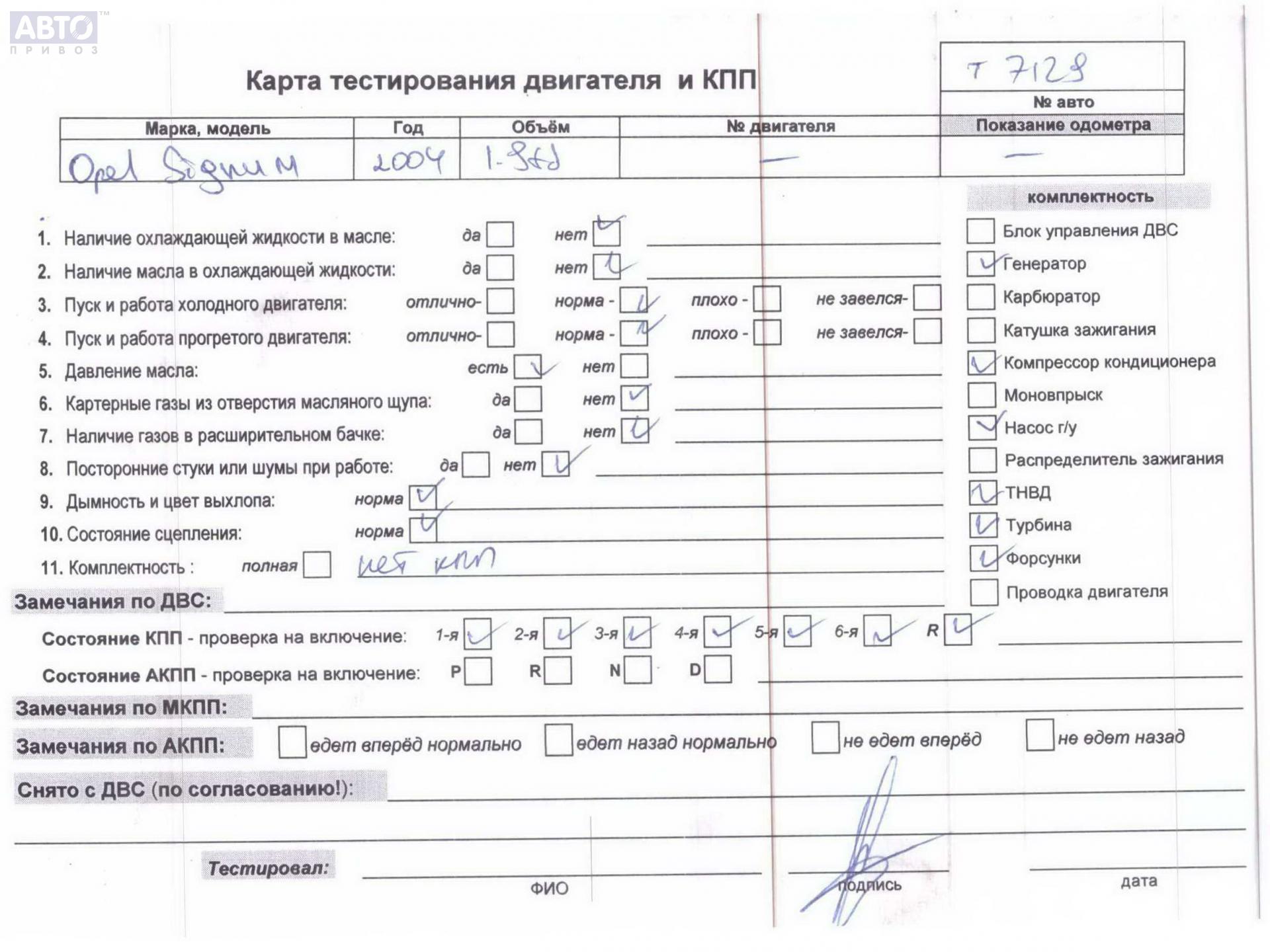 | Марка / Модель / Год: | Opel Signum (2003-2008) 2005 |