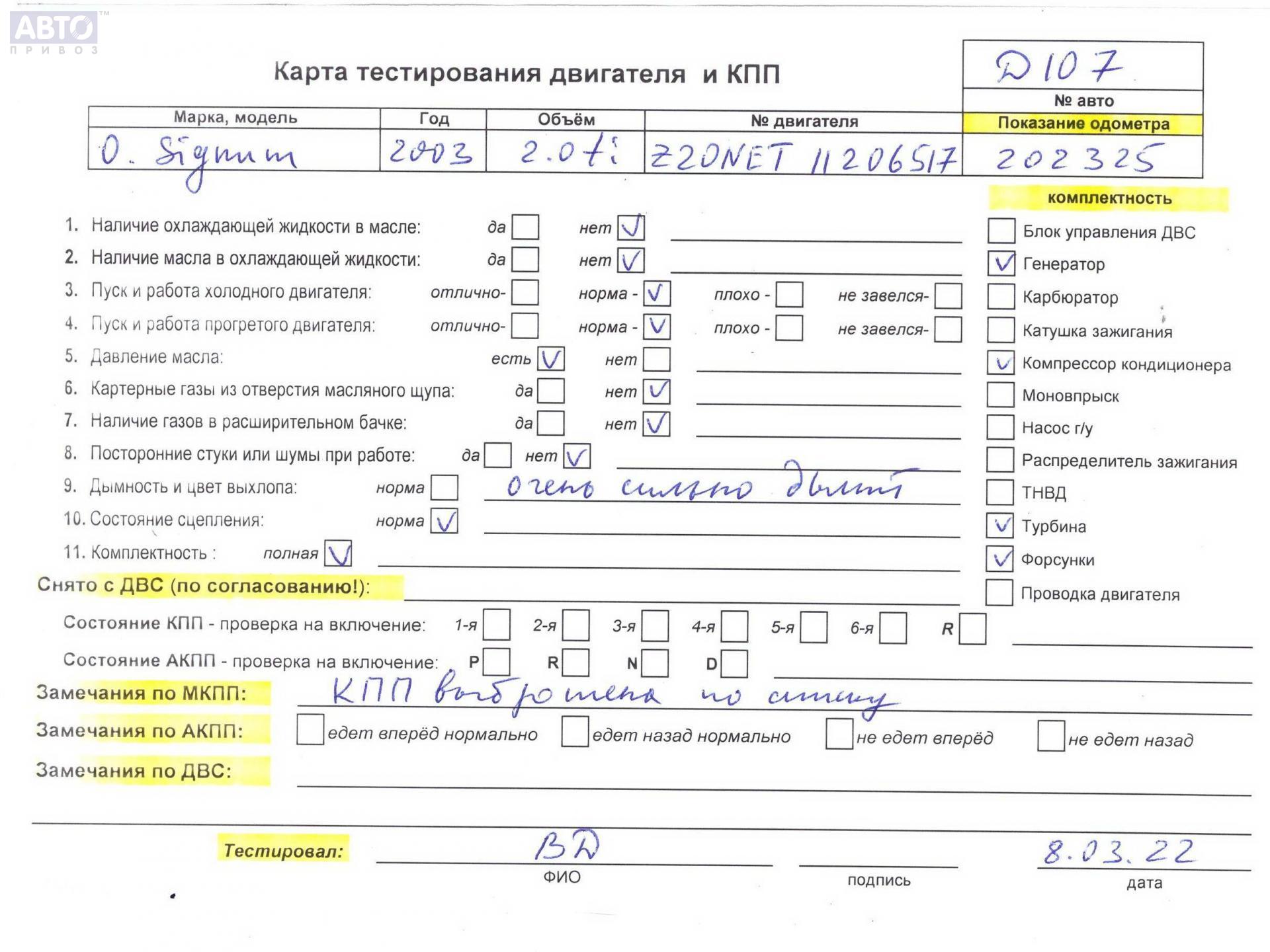 | Марка / Модель / Год: | Opel Signum (2003-2008) 2003 |