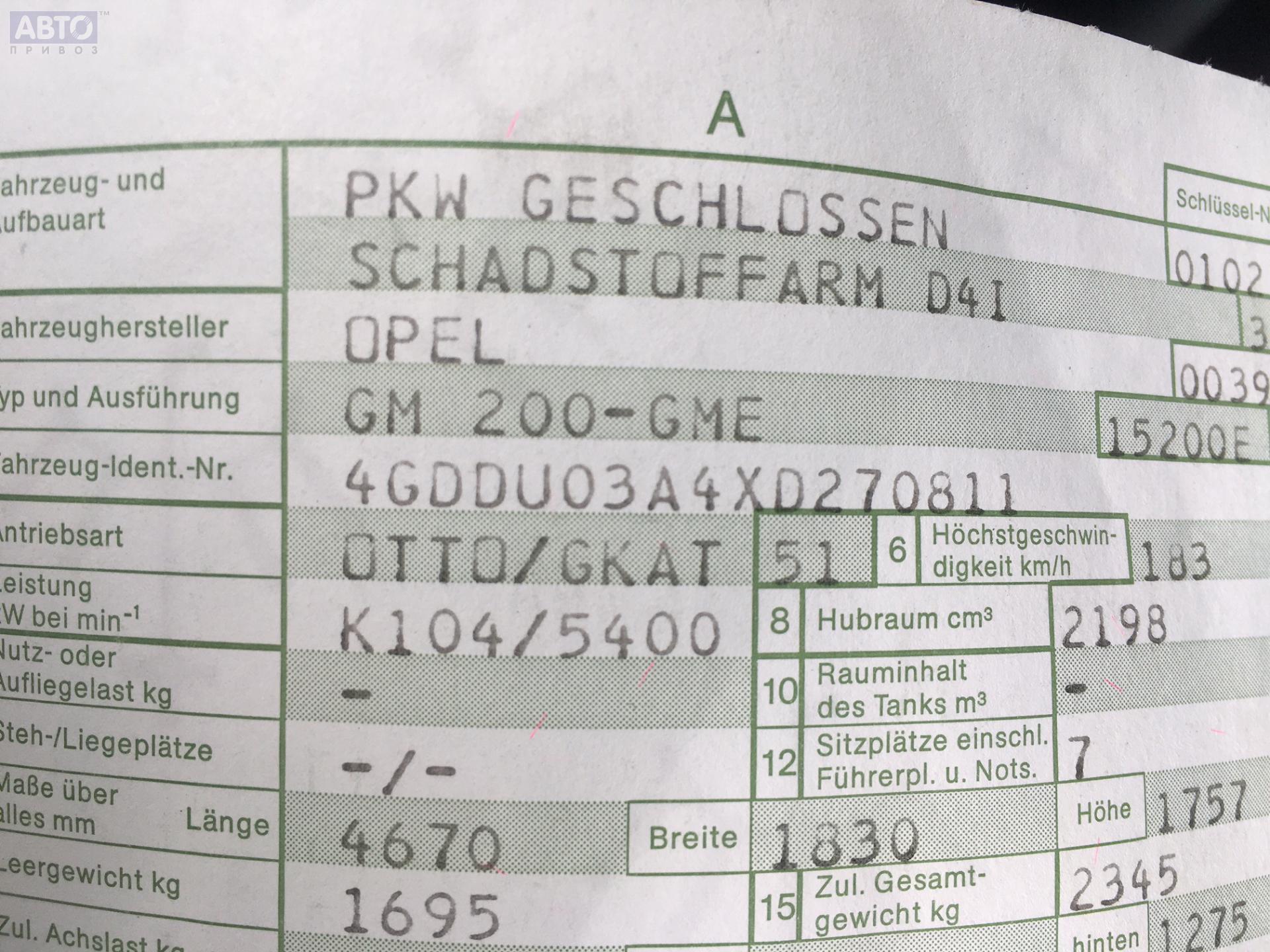 | Марка / Модель / Год: | Opel Sintra (1997-1999) 1999 |