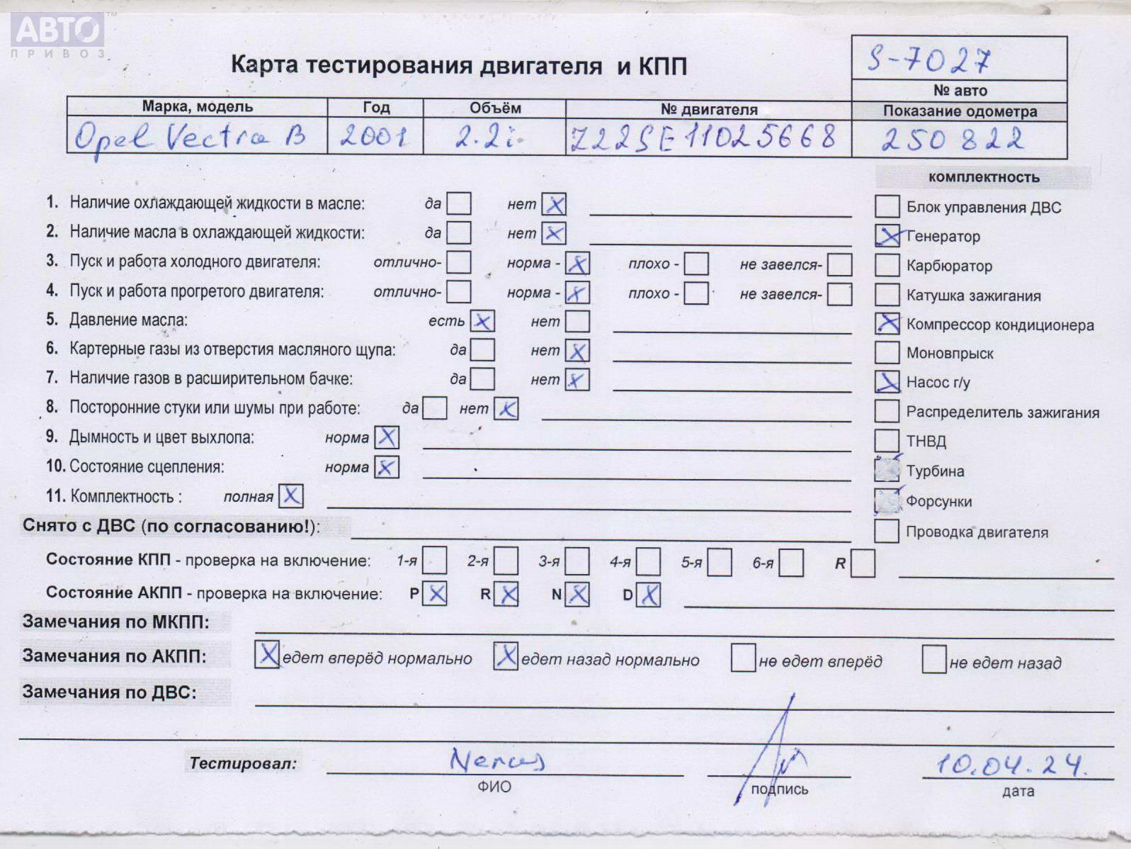 | Марка / Модель / Год: | Opel Vectra B (1995-2002) 2001 |