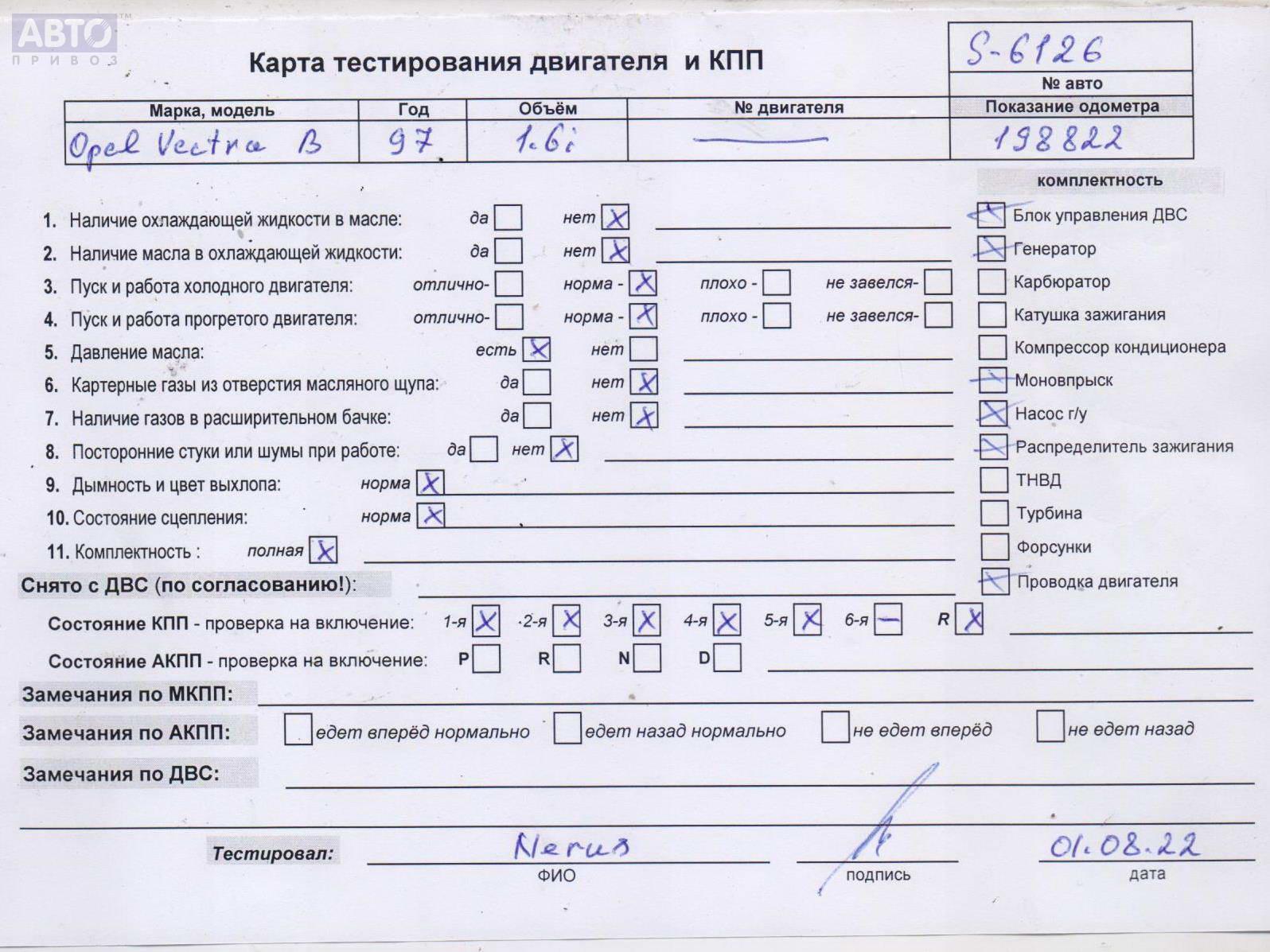| Марка / Модель / Год: | Opel Vectra B (1995-2002) 1997 |