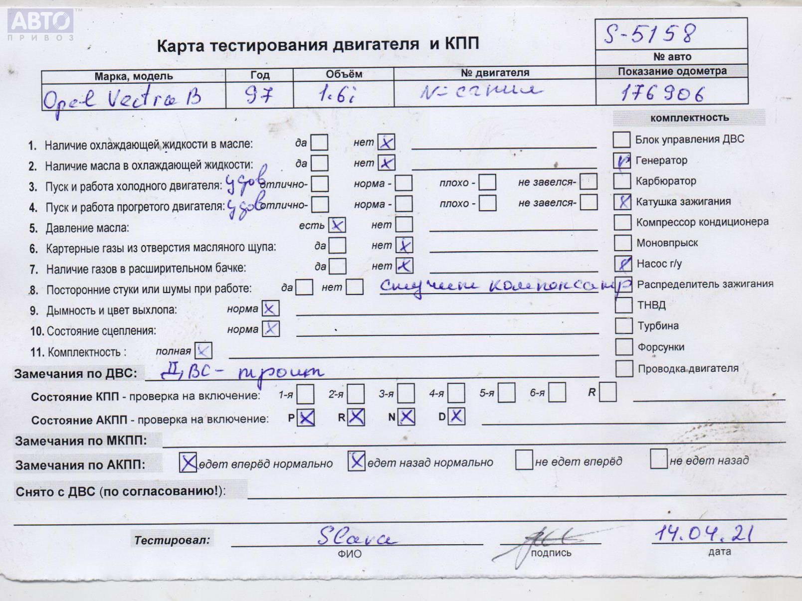 | Марка / Модель / Год: | Opel Vectra B (1995-2002) 1997 |