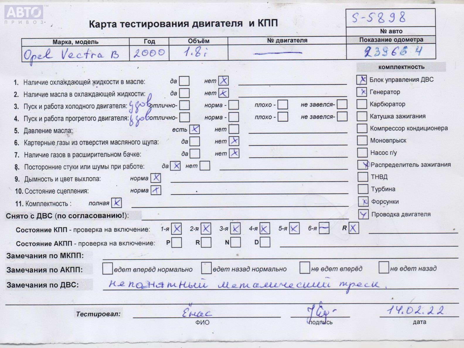 | Марка / Модель / Год: | Opel Vectra B (1995-2002) 2000 |