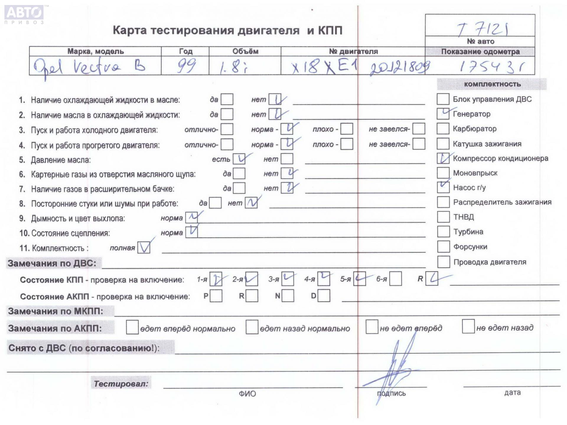 | Марка / Модель / Год: | Opel Vectra B (1995-2002) 1999 |