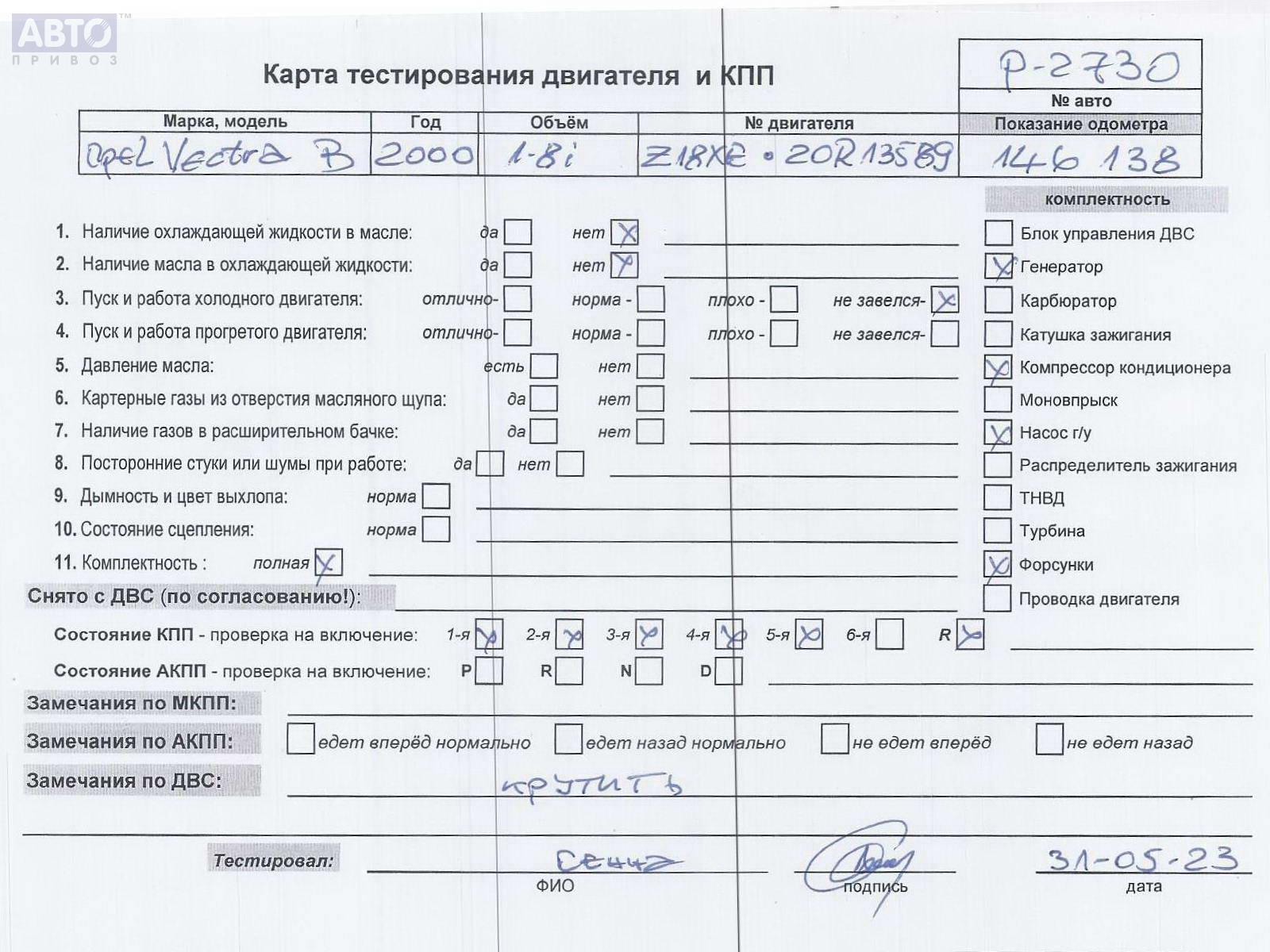 | Марка / Модель / Год: | Opel Vectra B (1995-2002) 2000 |