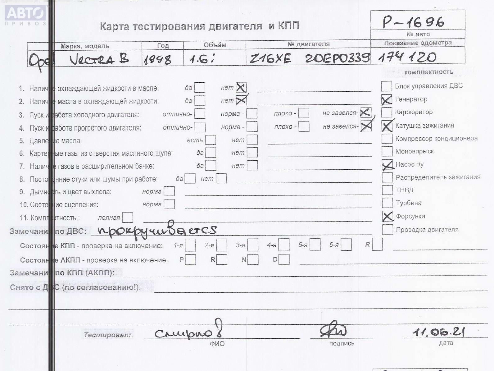 | Автомобиль / VIN: | P1696 W0L0JBF19W1356877 |