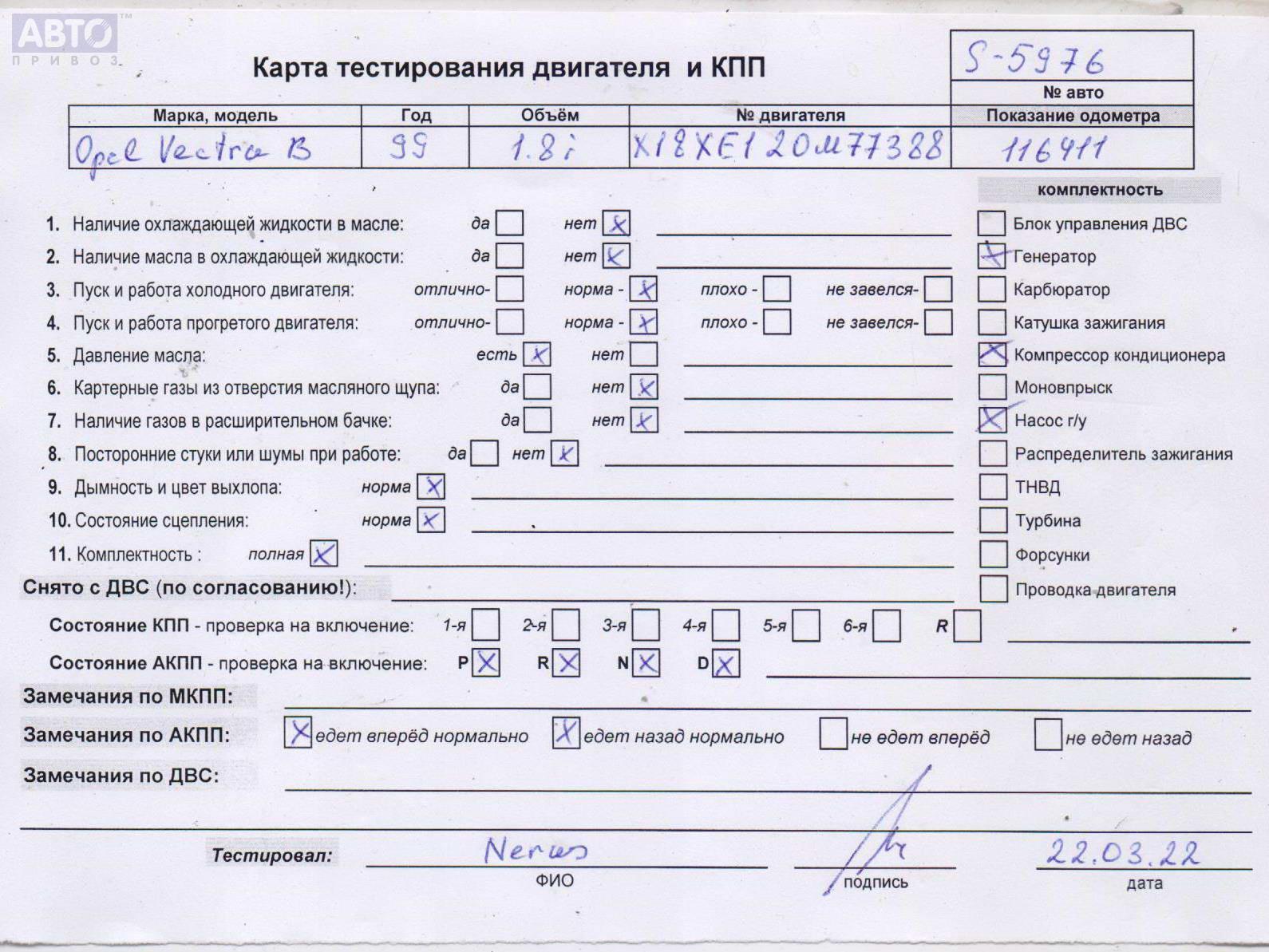 | Марка / Модель / Год: | Opel Vectra B (1995-2002) 1999 |