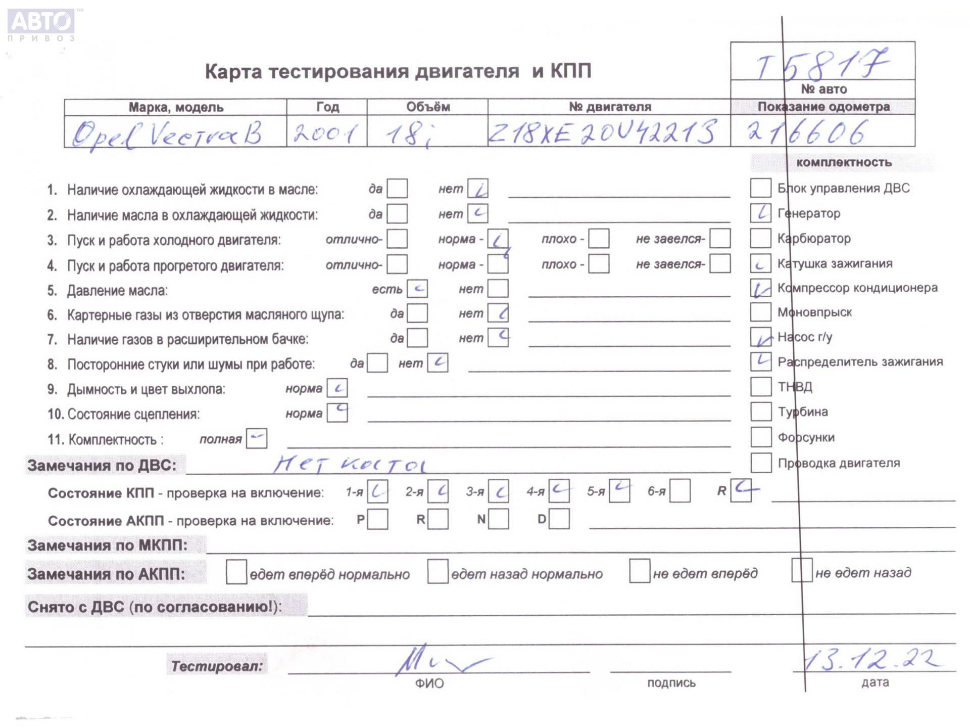 | Марка / Модель / Год: | Opel Vectra B (1995-2002) 2001 |