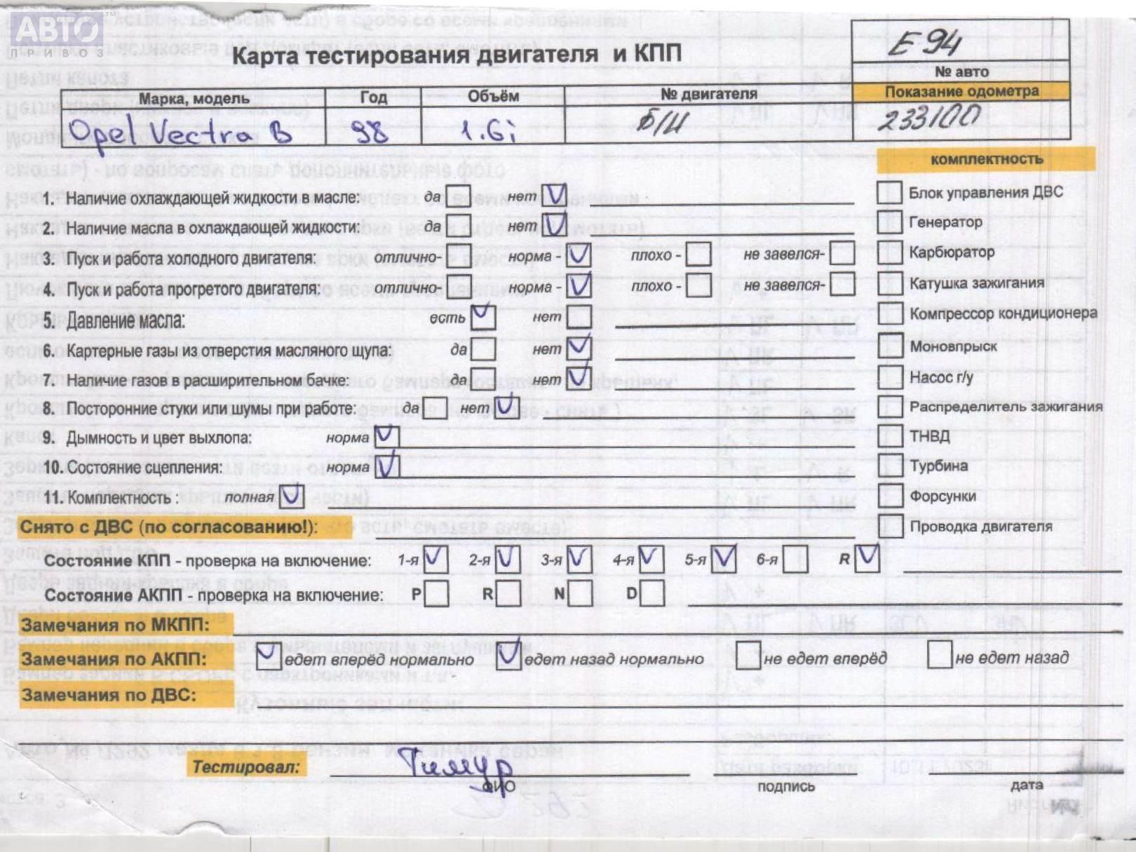 | Марка / Модель / Год: | Opel Vectra B (1995-2002) 1998 |