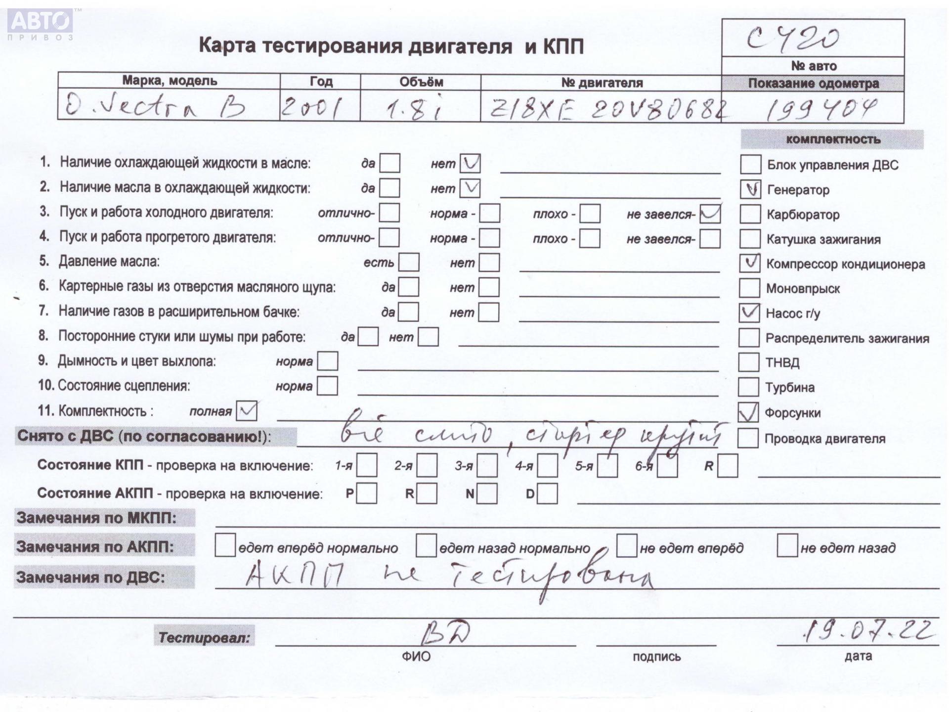 | Марка / Модель / Год: | Opel Vectra B (1995-2002) 2001 |