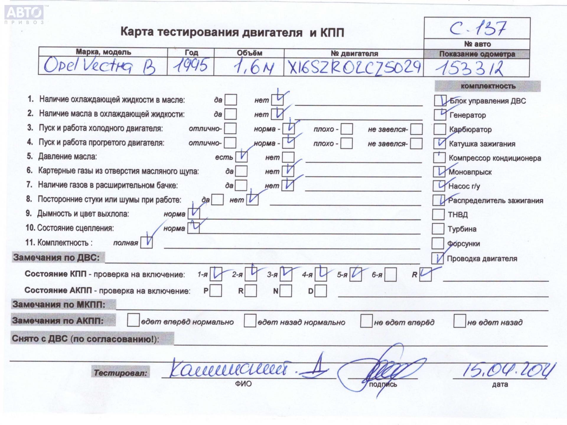 | Марка / Модель / Год: | Opel Vectra B (1995-2002) 1995 |