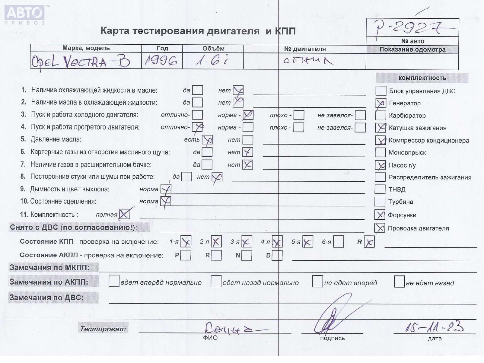 | Марка / Модель / Год: | Opel Vectra B (1995-2002) 1996 |
