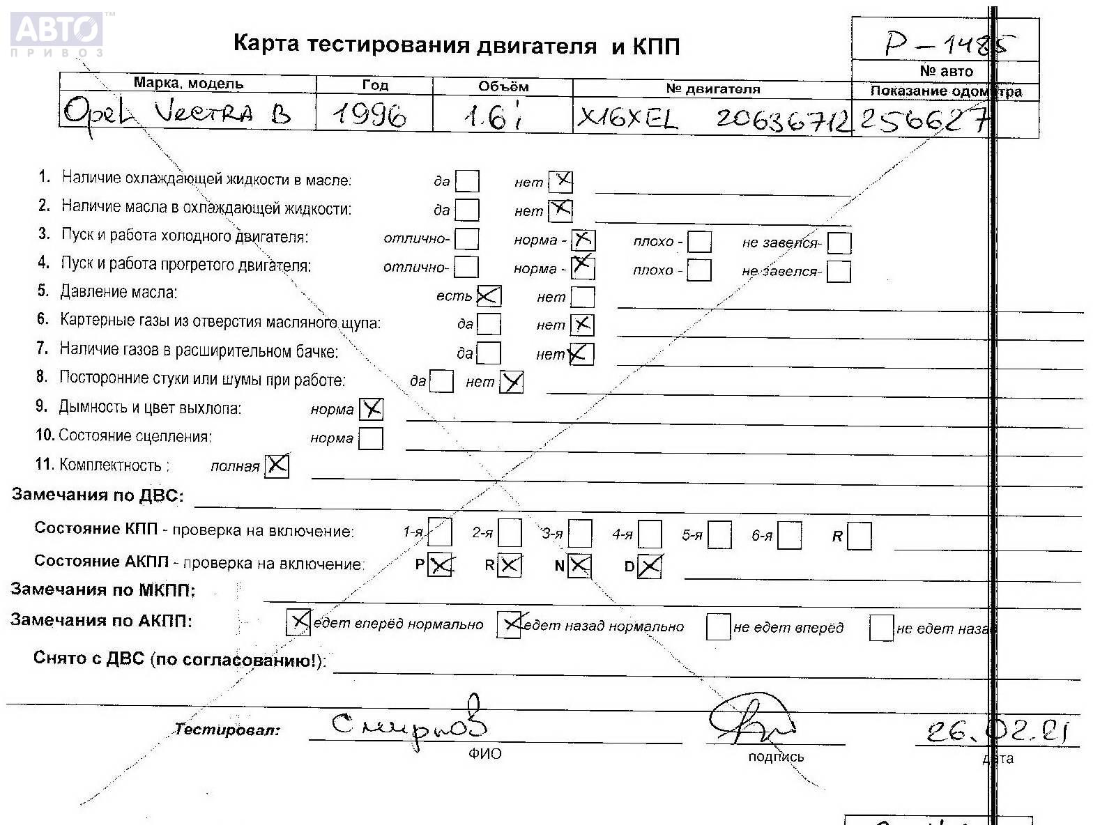 | Марка / Модель / Год: | Opel Vectra B (1995-2002) 1996 |