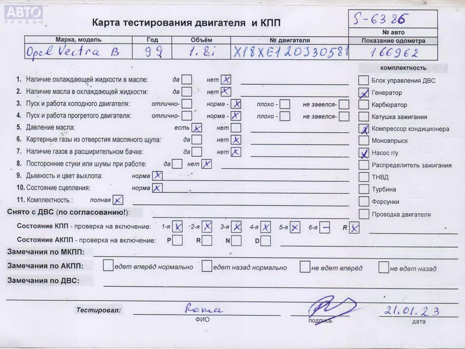 | Марка / Модель / Год: | Opel Vectra B (1995-2002) 1999 |
