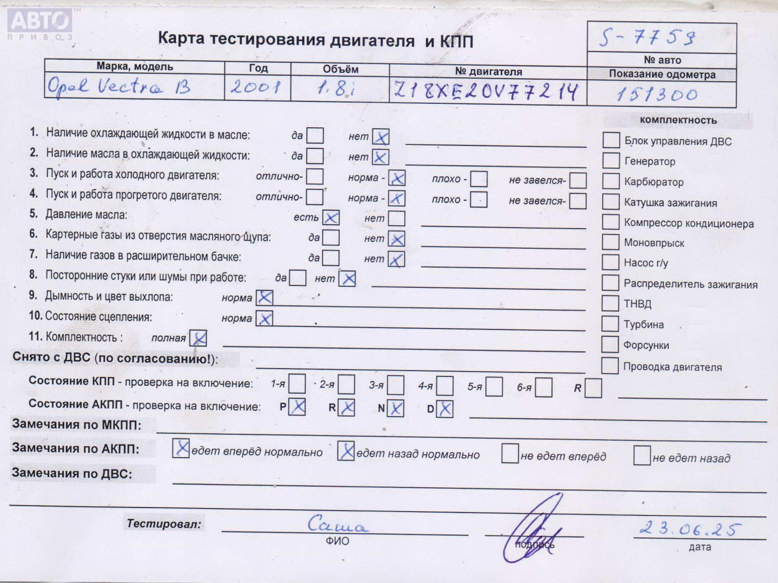 | Марка / Модель / Год: | Opel Vectra B (1995-2002) 2001 |