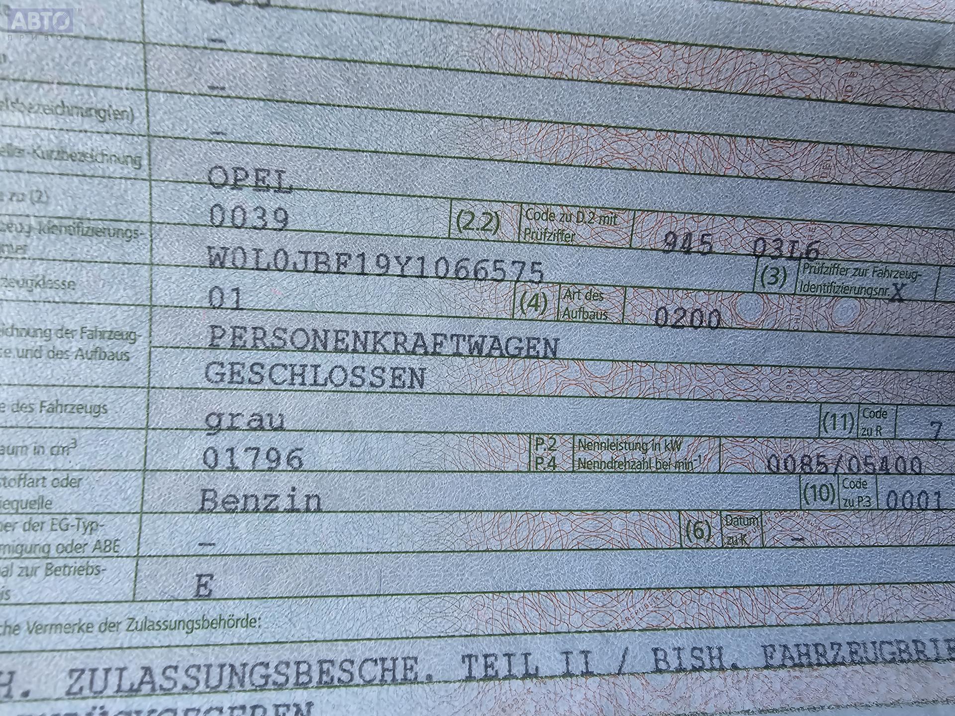 | Автомобиль / VIN: | T6543 W0L0JBF19Y1066575 |