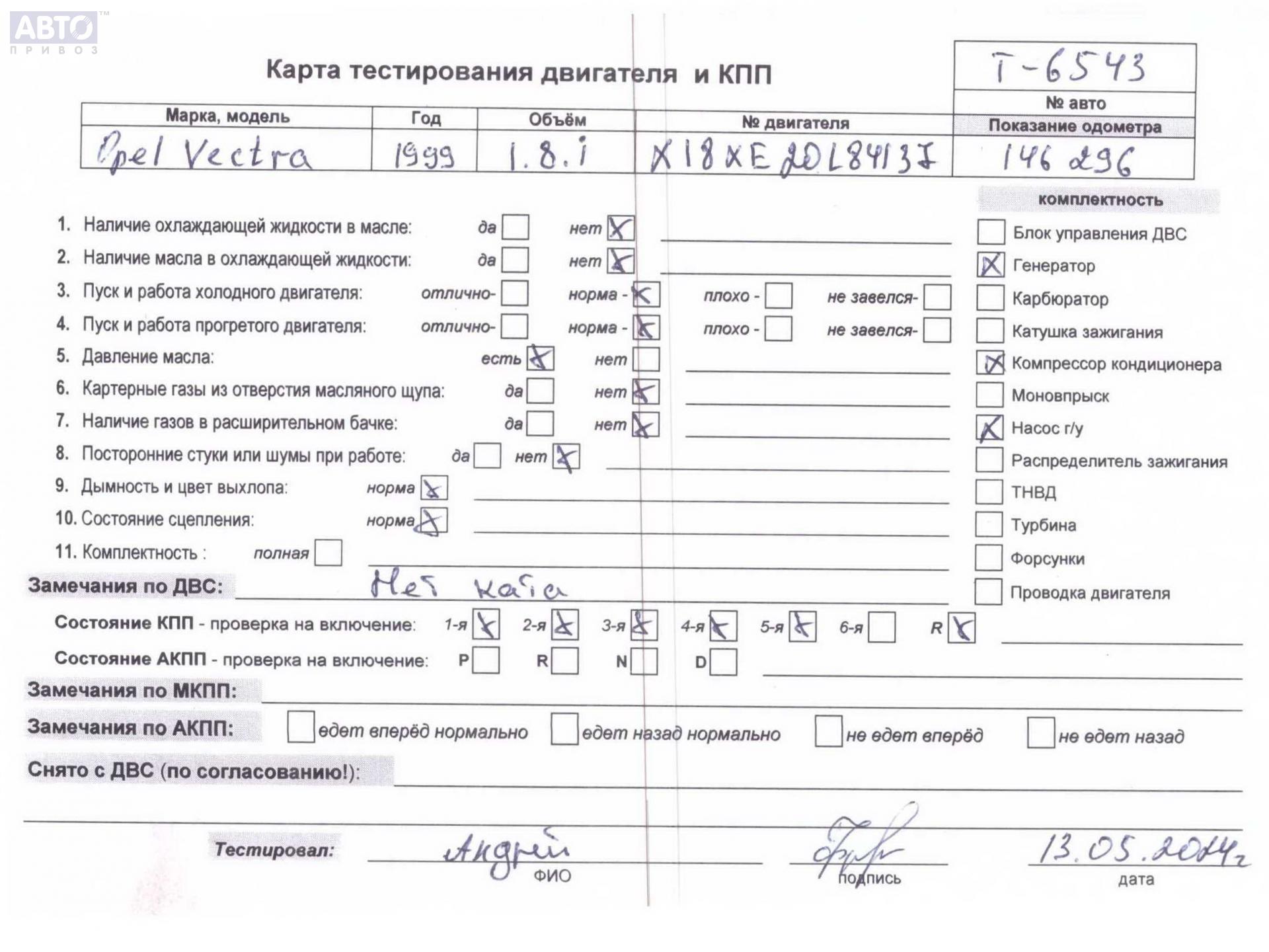 | Марка / Модель / Год: | Opel Vectra B (1995-2002) 1999 |