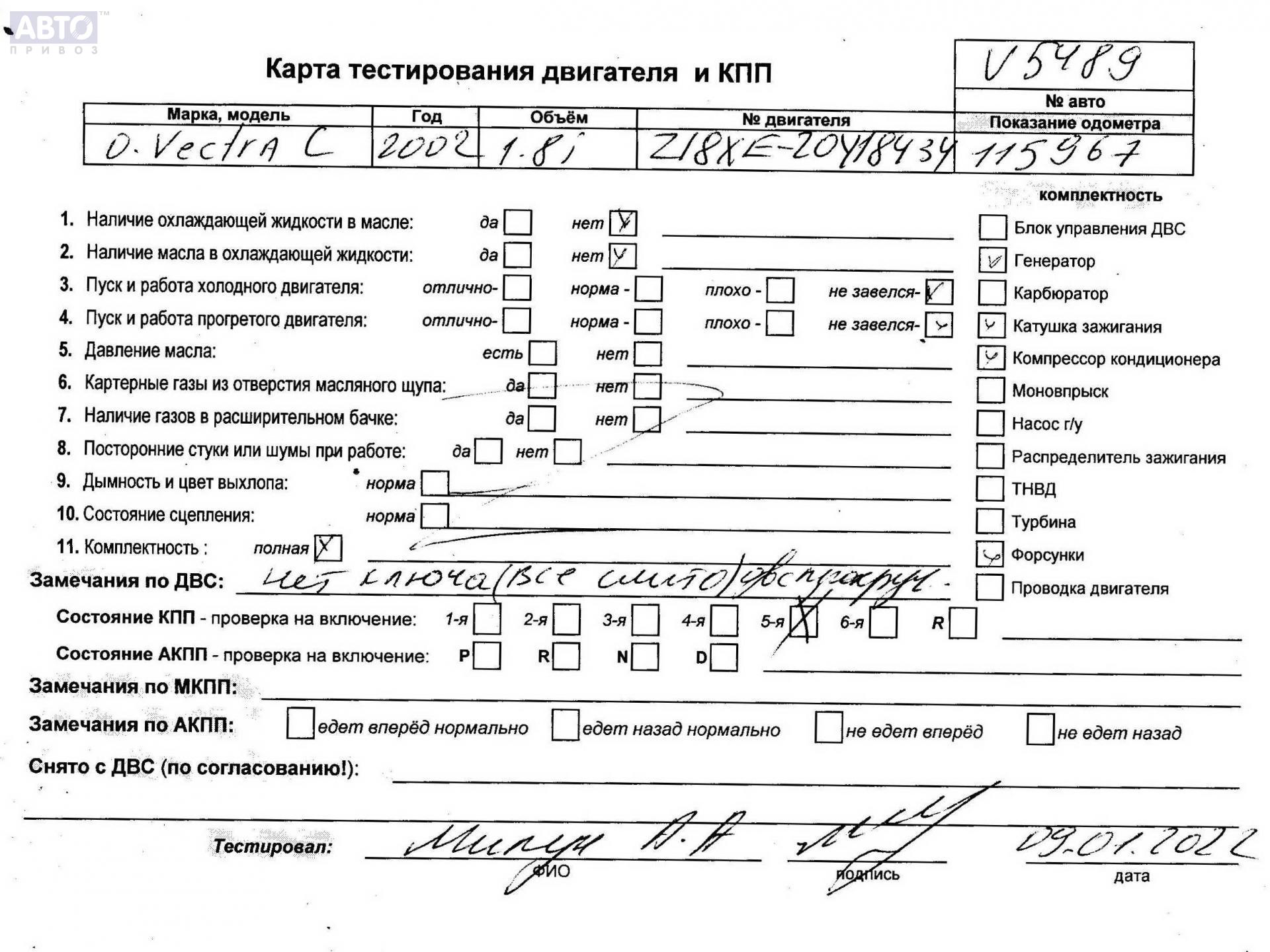 | Марка / Модель / Год: | Opel Vectra C (2002-2008) 2002 |