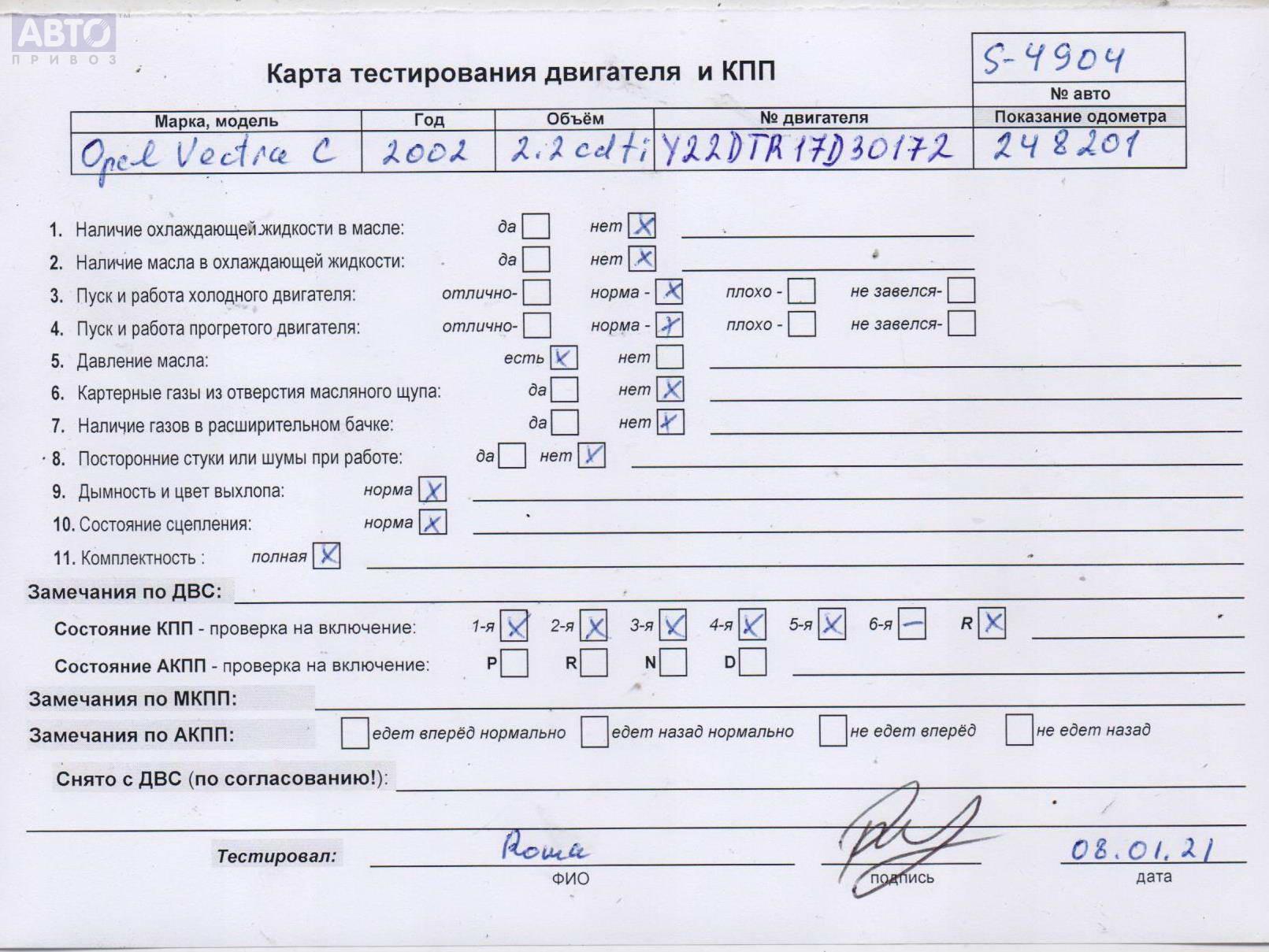 | Марка / Модель / Год: | Opel Vectra C (2002-2008) 2002 |
