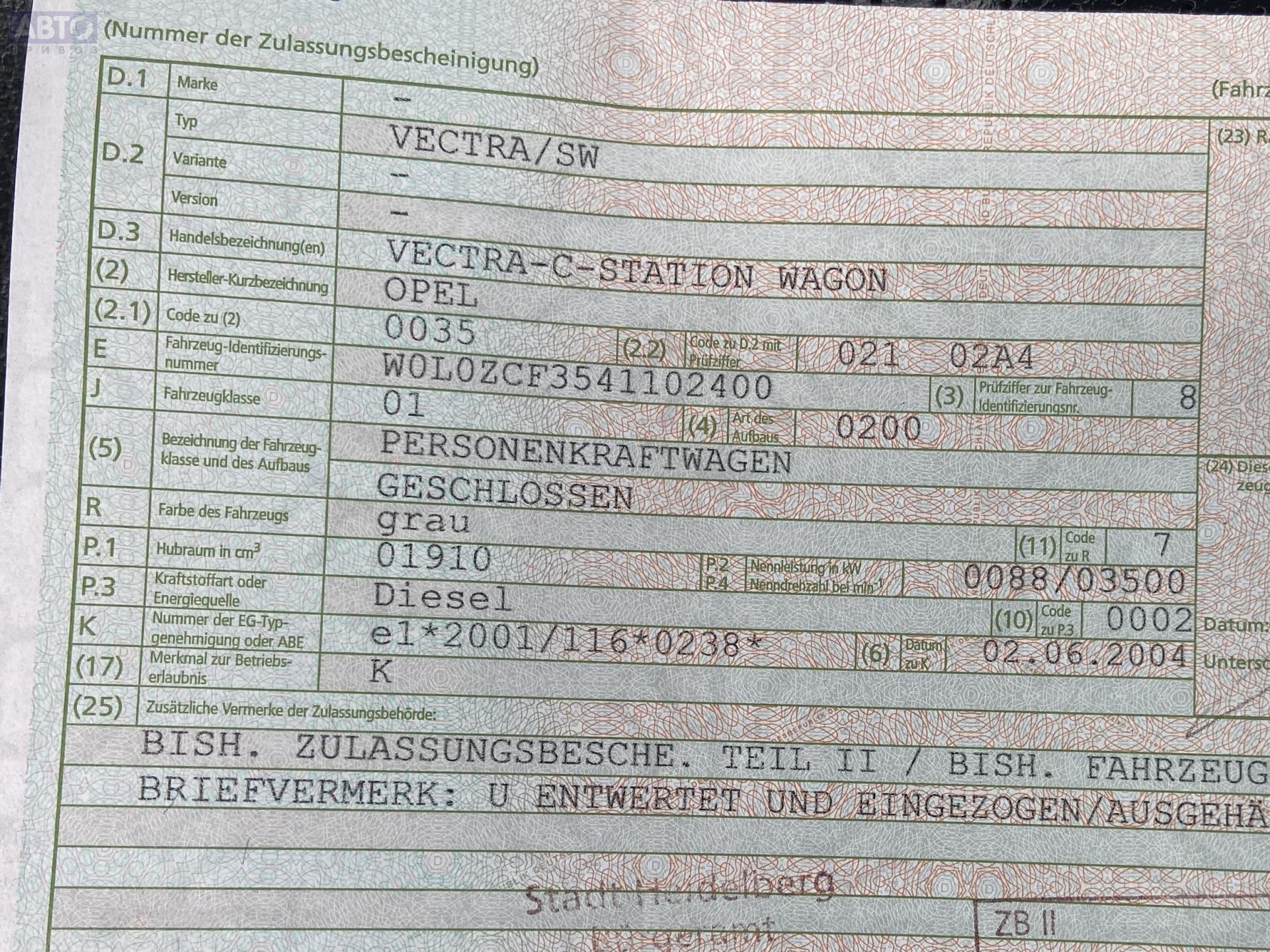| Марка / Модель / Год: | Opel Vectra C (2002-2008) 2004 |