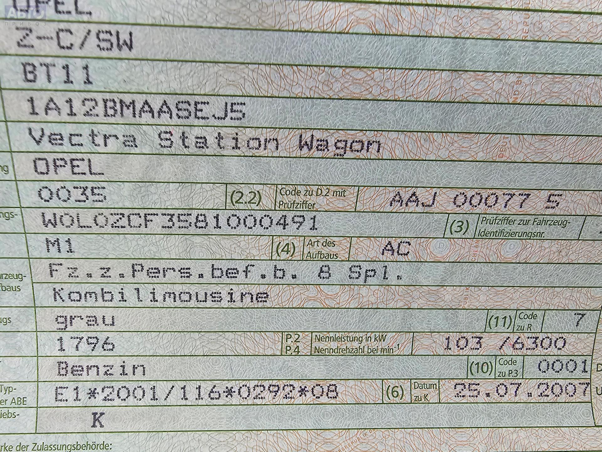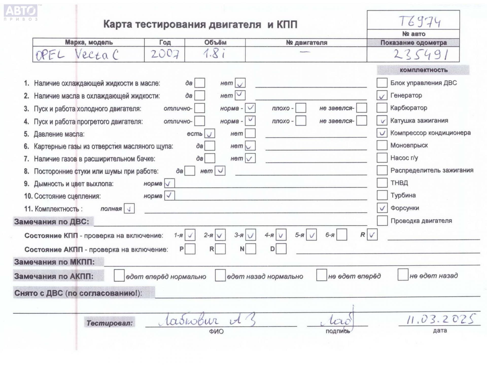 | Марка / Модель / Год: | Opel Vectra C (2002-2008) 2007 |