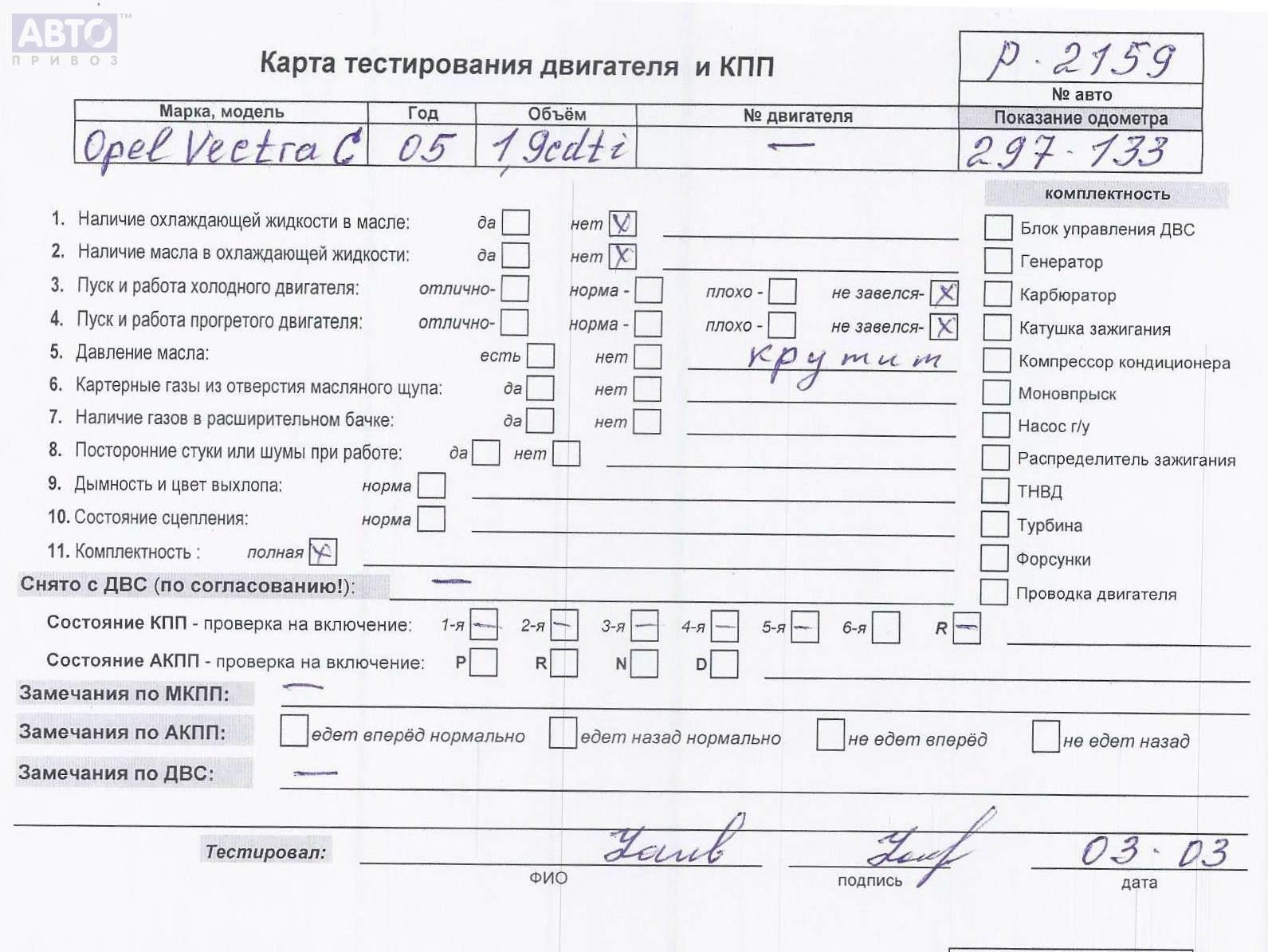 | Марка / Модель / Год: | Opel Vectra C (2002-2008) 2005 |