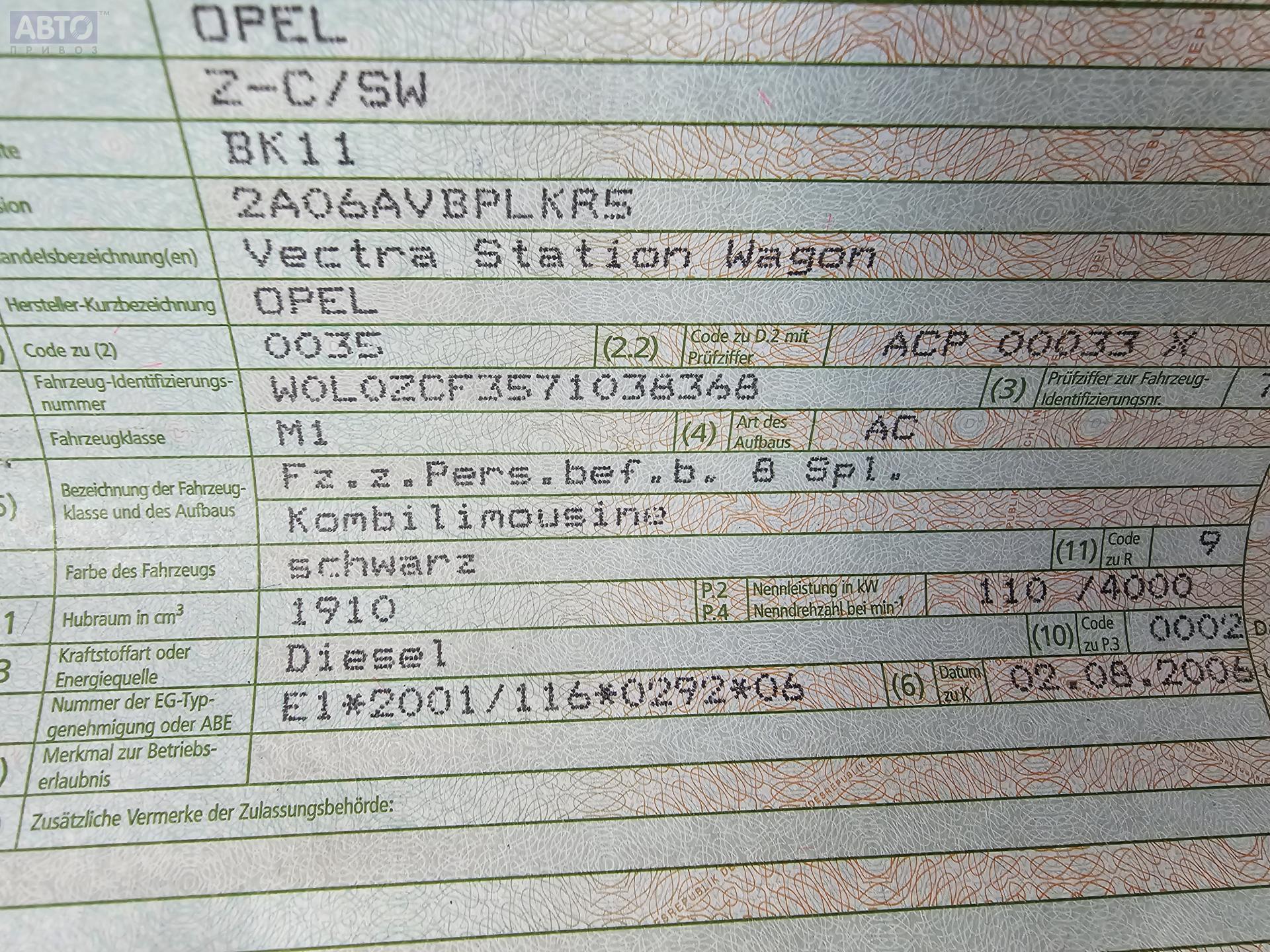 | Марка / Модель / Год: | Opel Vectra C (2002-2008) 2006 |